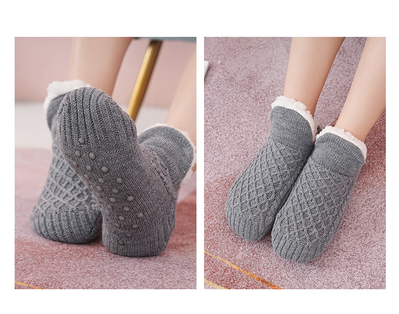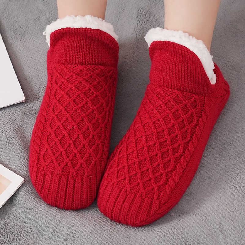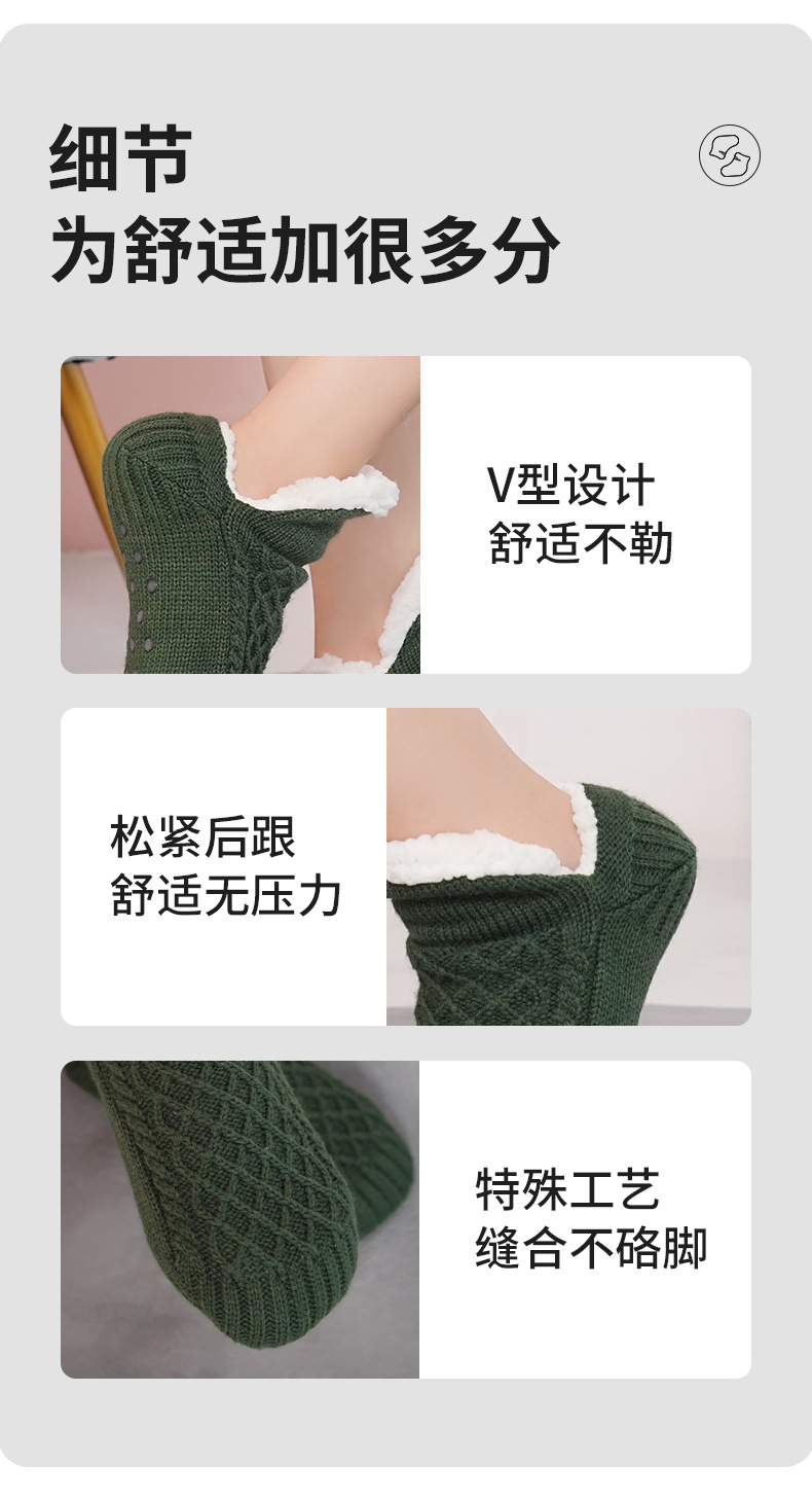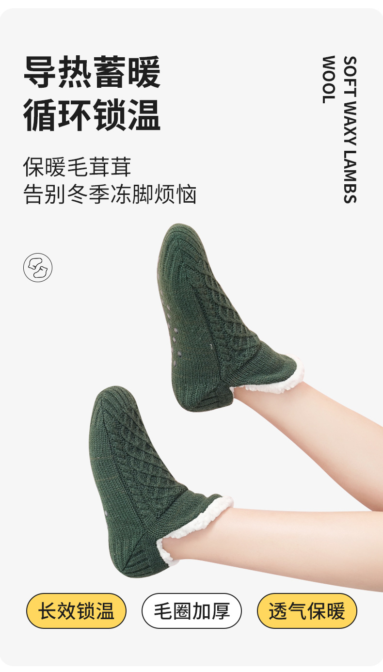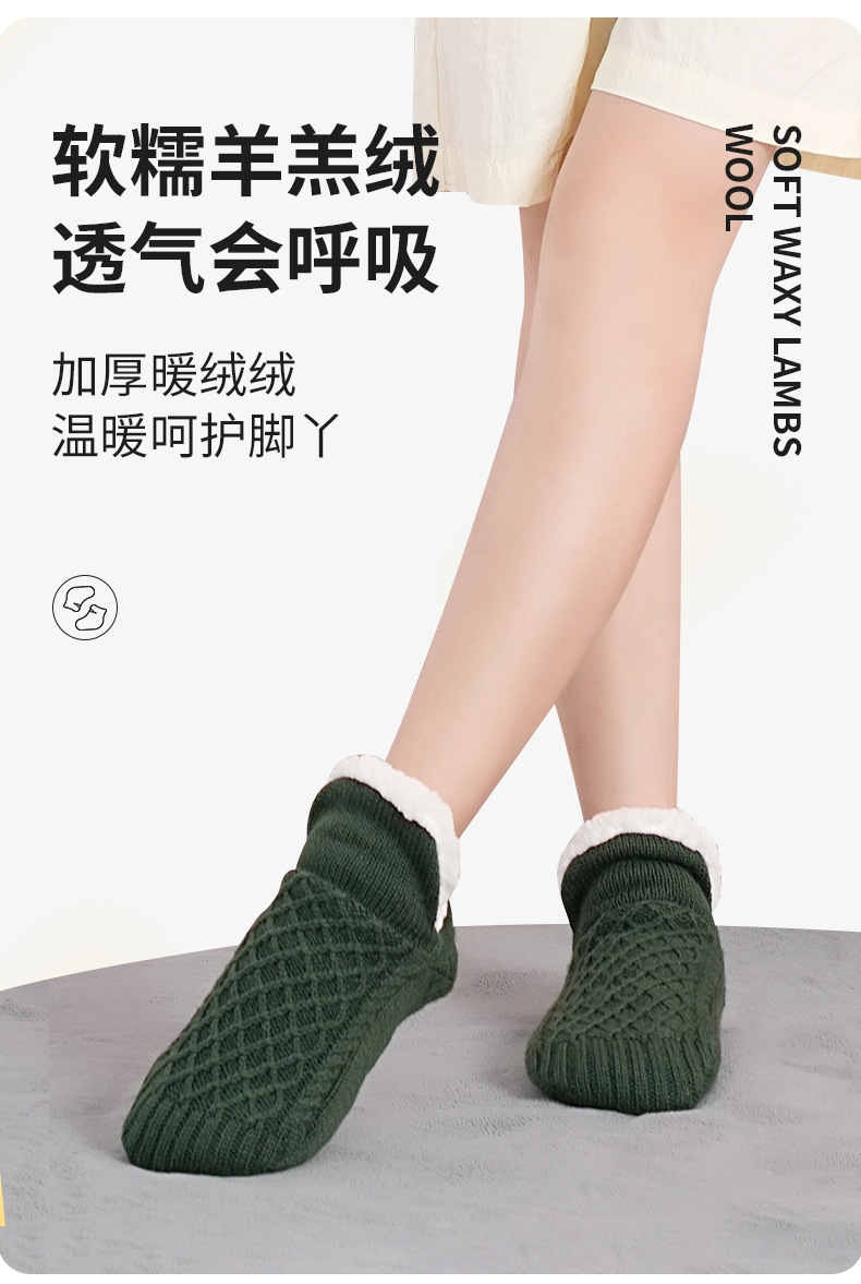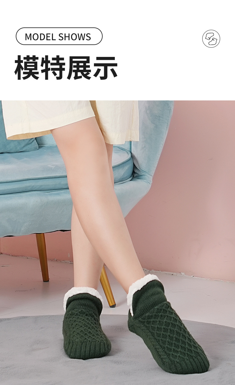 秋冬女士加绒加厚暖脚神器室内防滑袜套居家鞋袜子毛线保暖地板袜