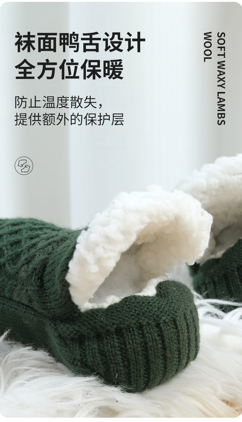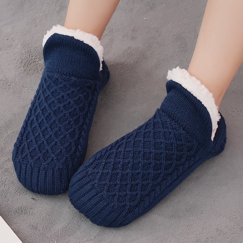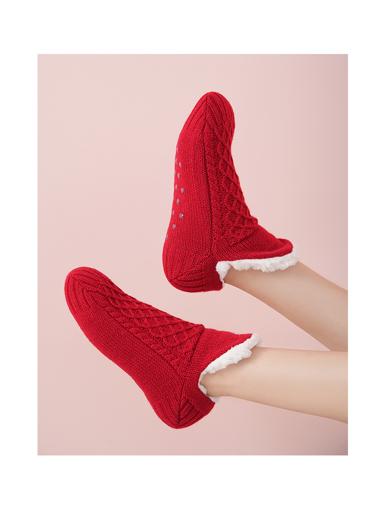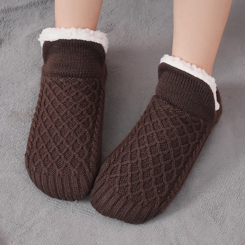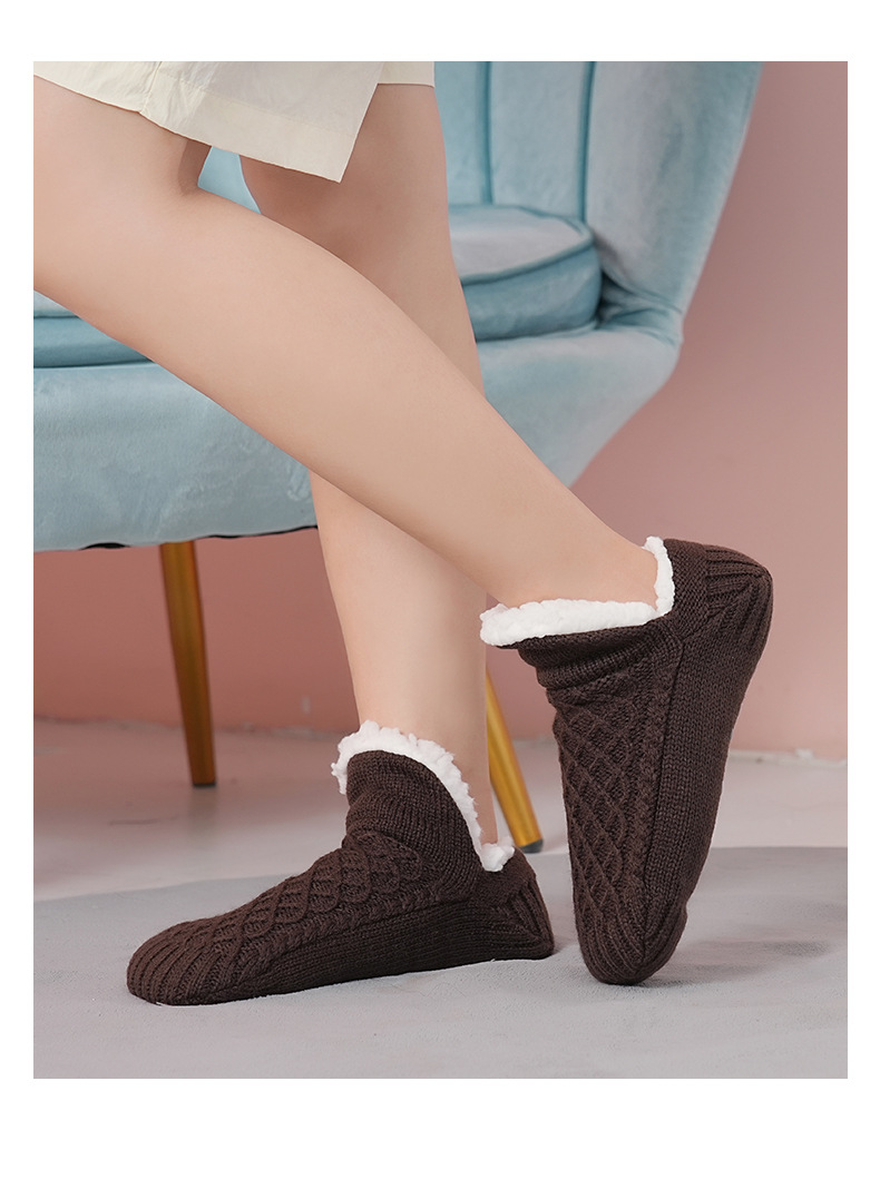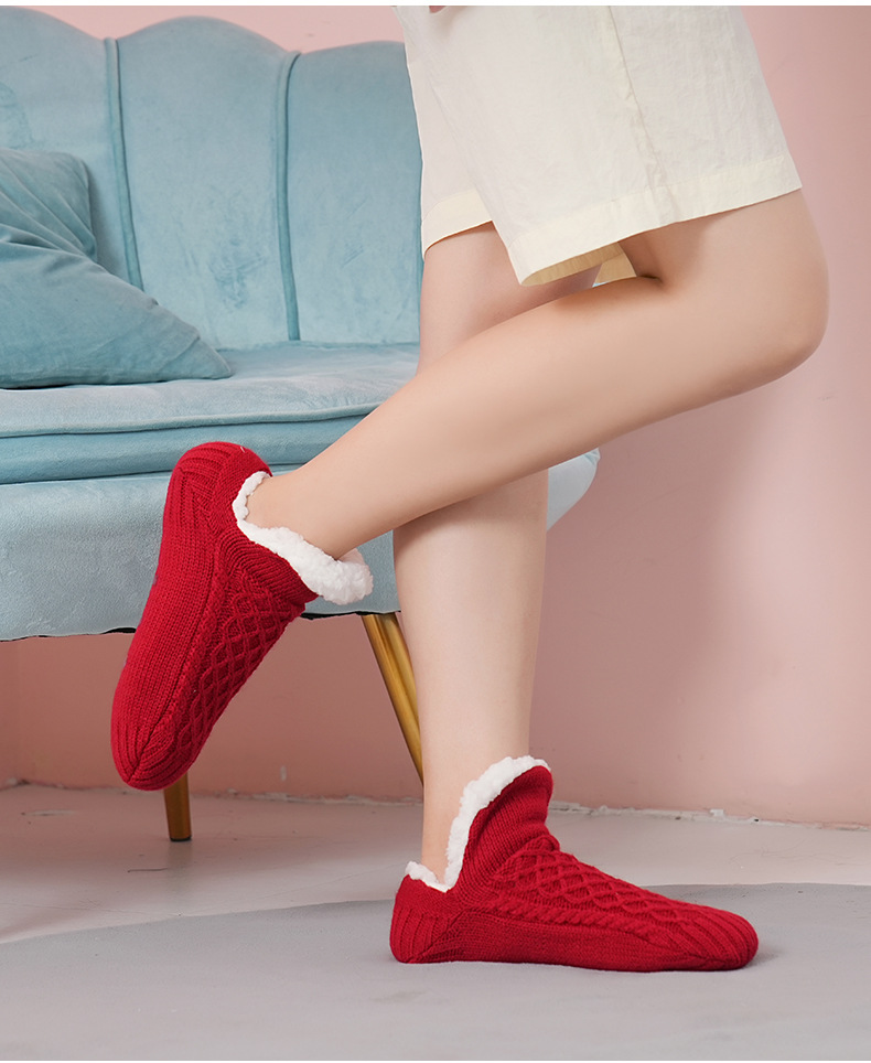 秋冬女士加绒加厚暖脚神器室内防滑袜套居家鞋袜子毛线保暖地板袜