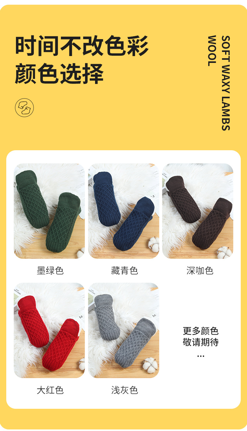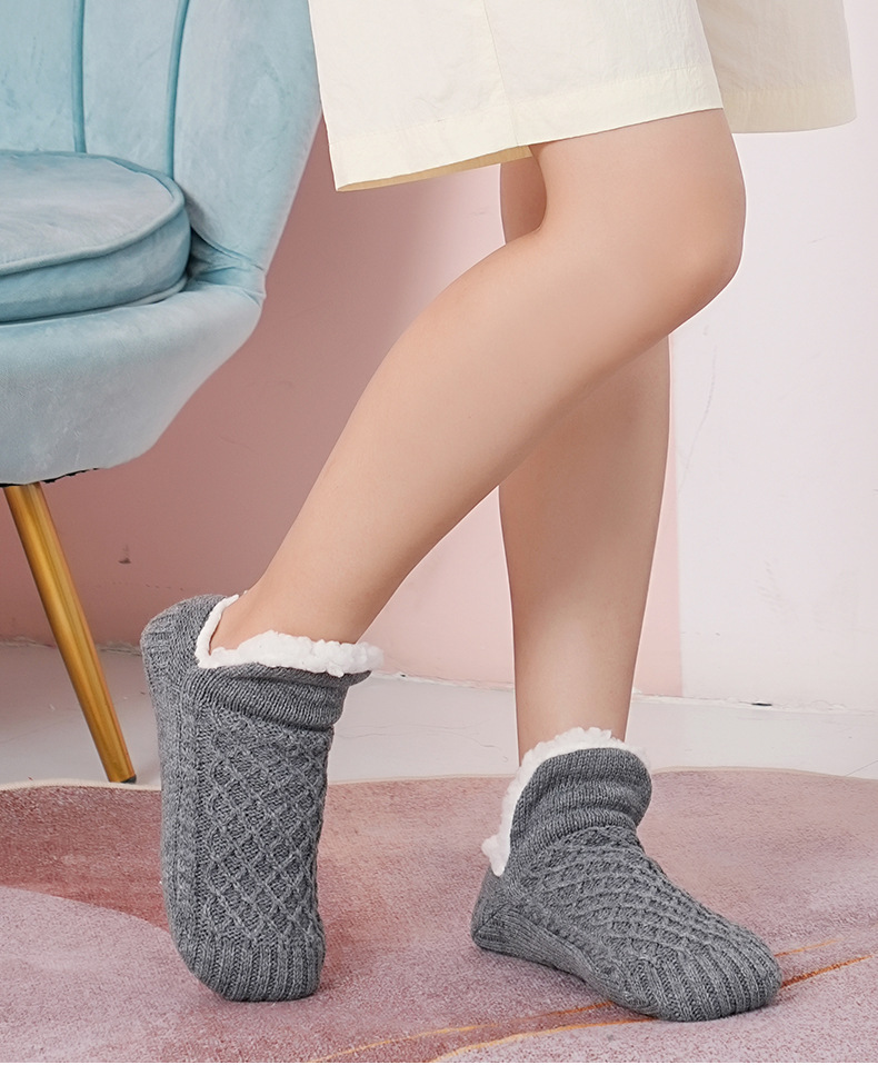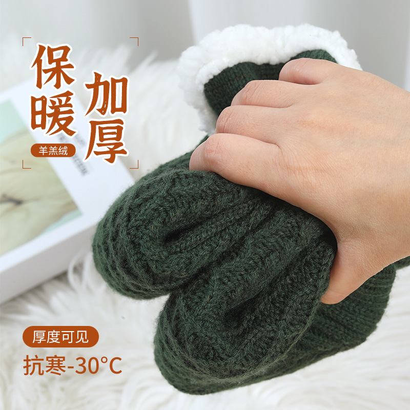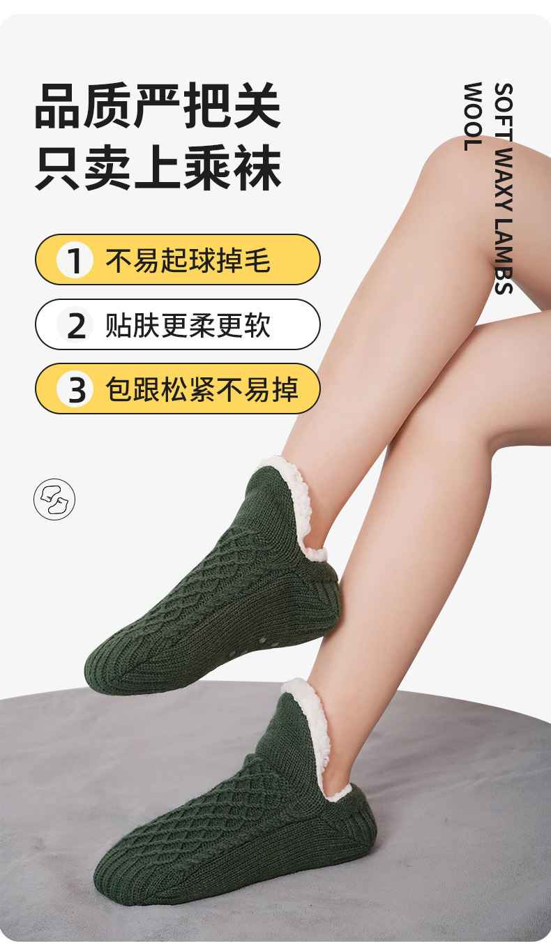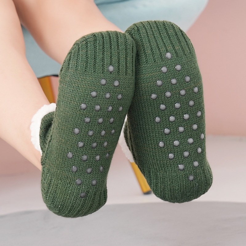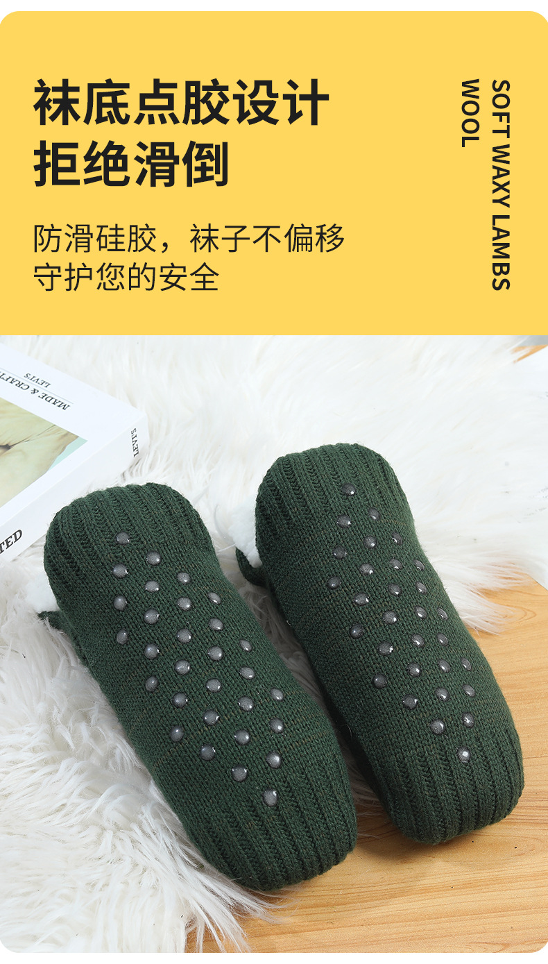 秋冬女士加绒加厚暖脚神器室内防滑袜套居家鞋袜子毛线保暖地板袜