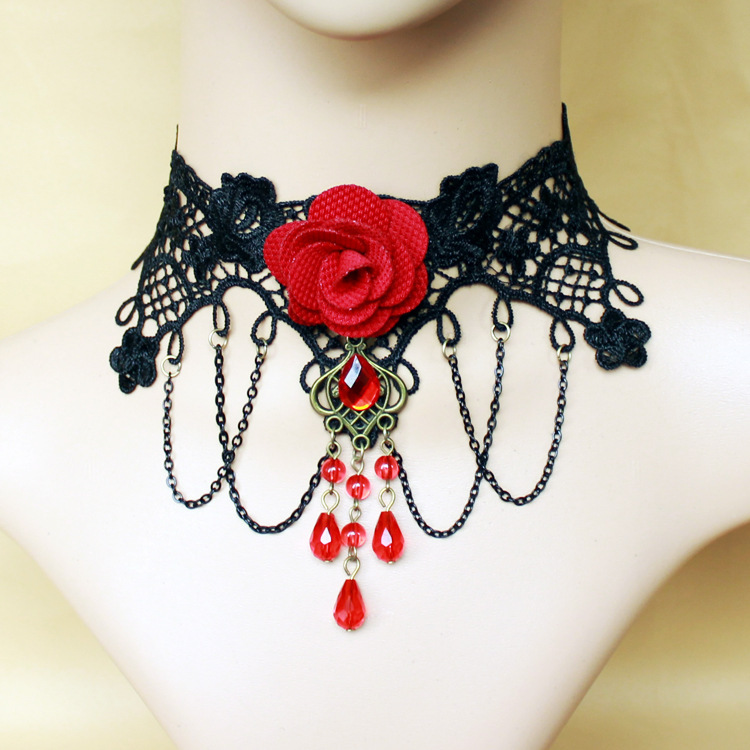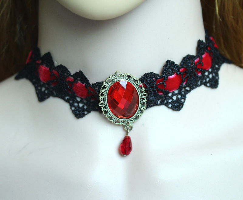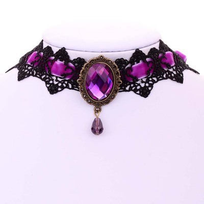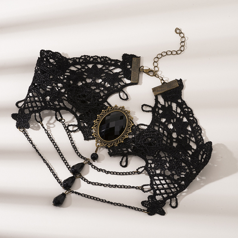 欧美外贸饰品宝石宽颈饰黑色复古简约外贸韩国蕾丝项链配饰假领子
