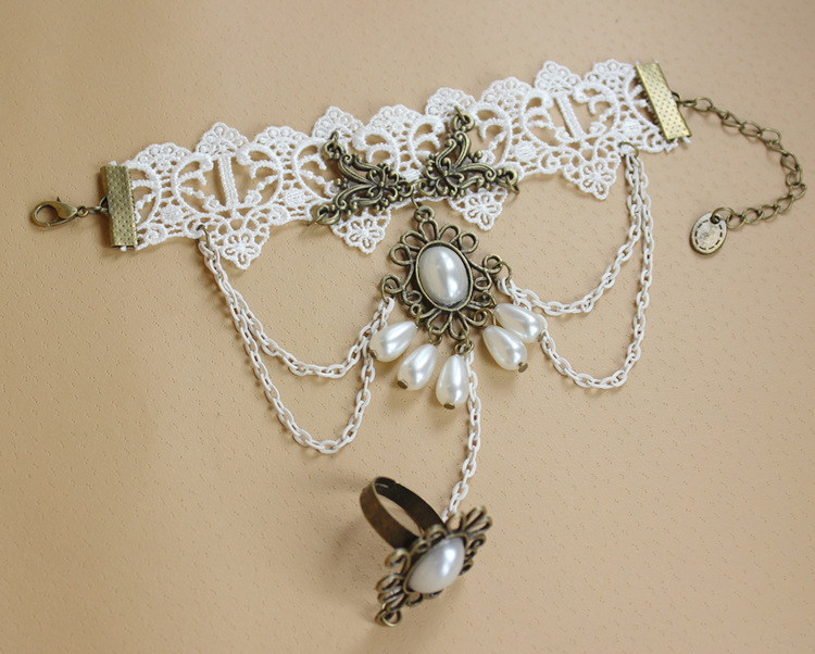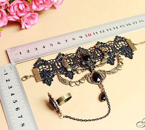 手工法式朋克复古手链戒指一体链万圣节手鬼节手链哥特流苏手饰