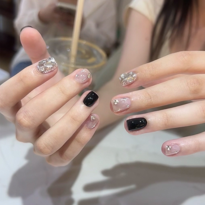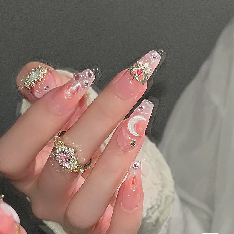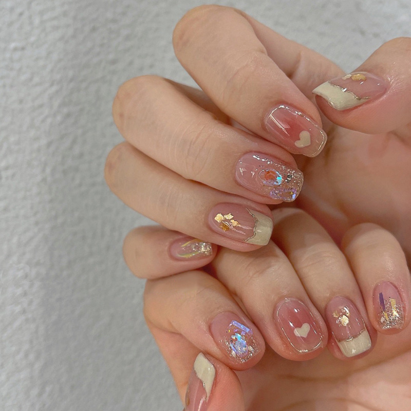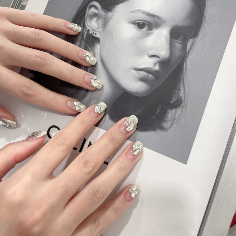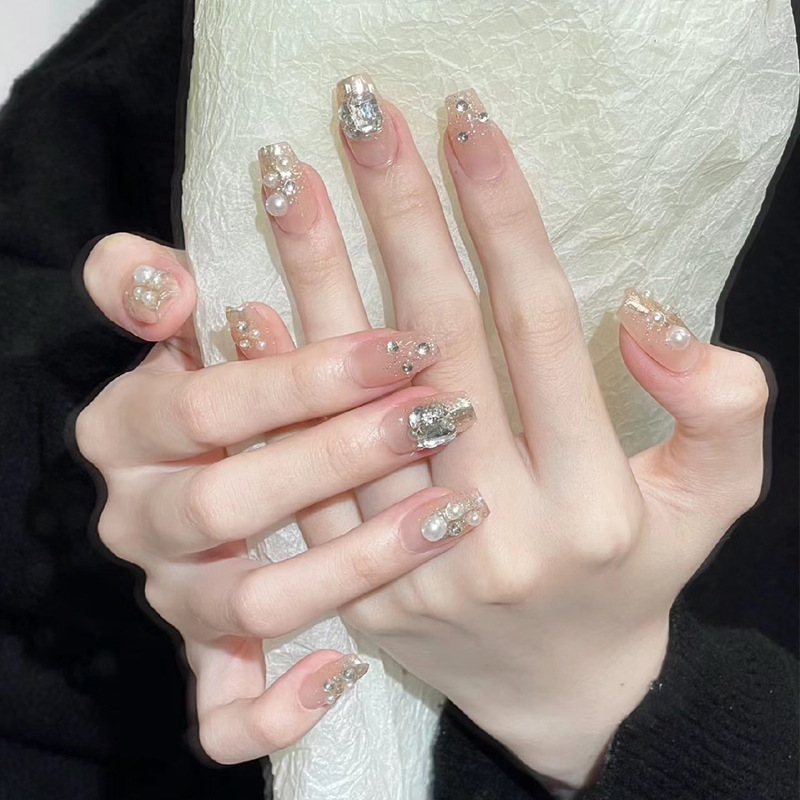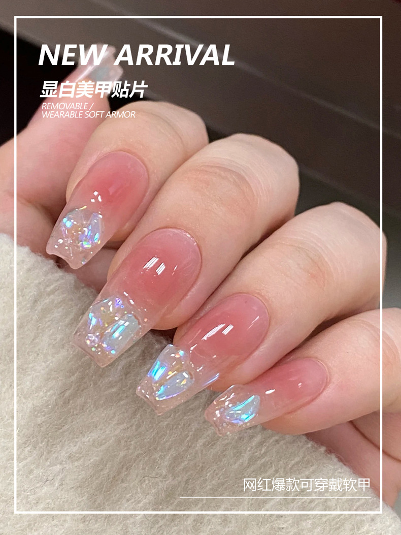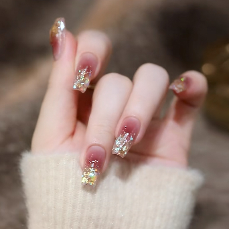 小红书爆款手工穿戴甲中长款冰透极光钻腮红美甲甲片批发指甲贴片