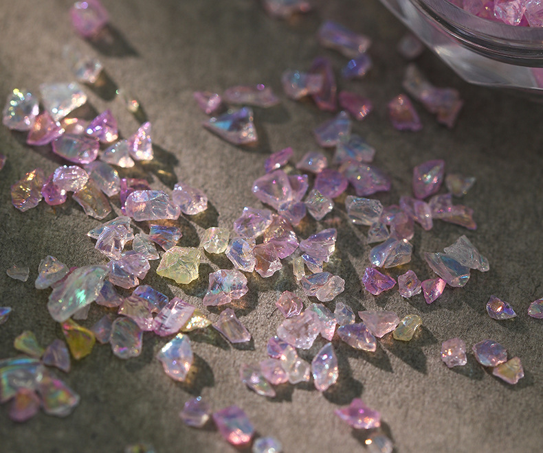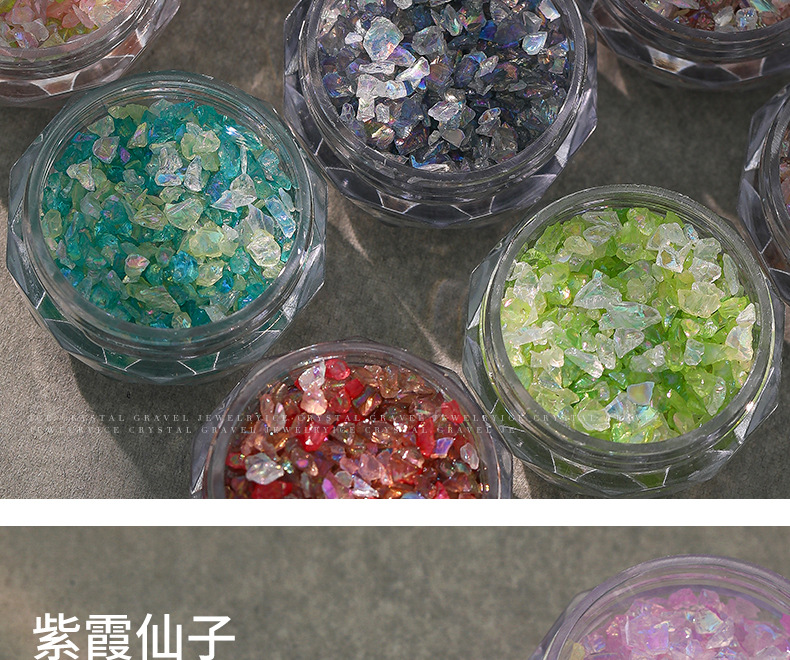 网红偏光细闪冰晶幻彩碎石美甲饰品混色天然碎矿石DIY穿戴甲材料