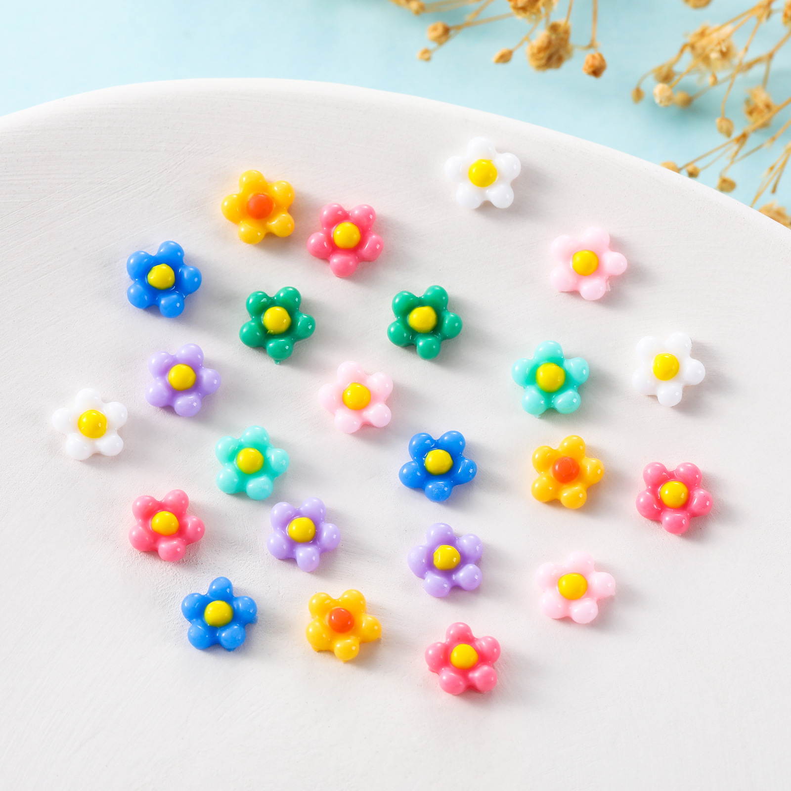 鸡蛋花美甲饰品日系小清新立体树脂五瓣花diy穿戴甲指甲饰品批发