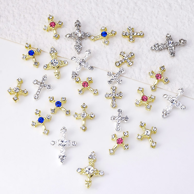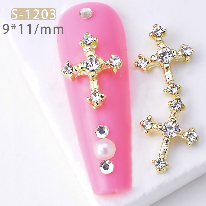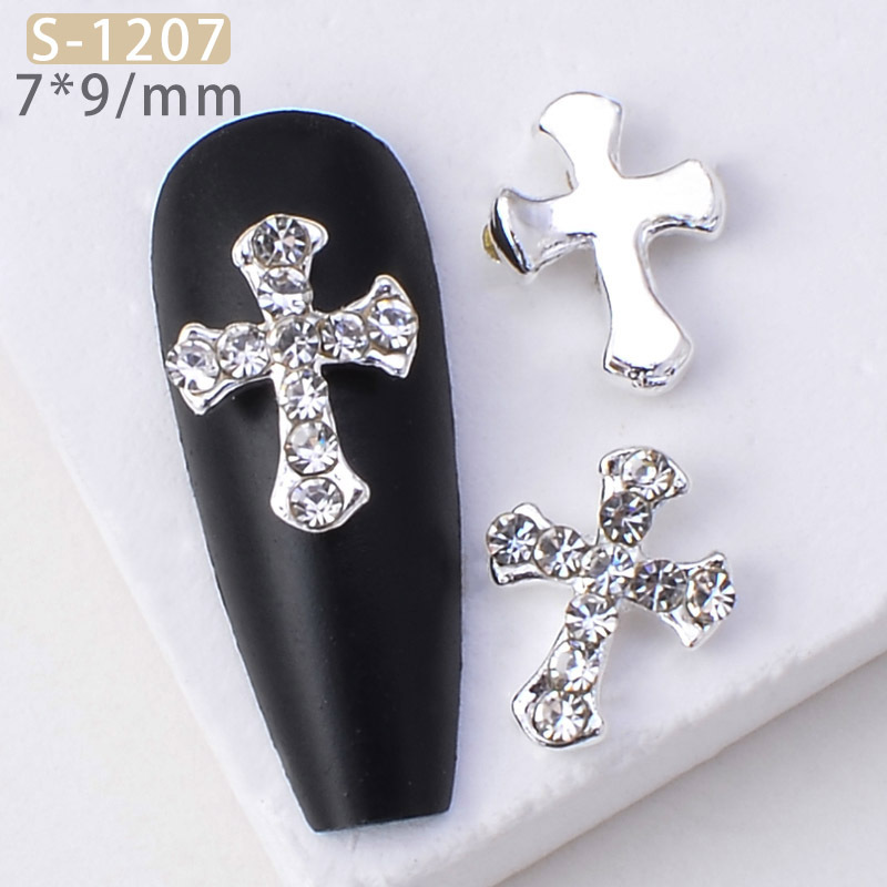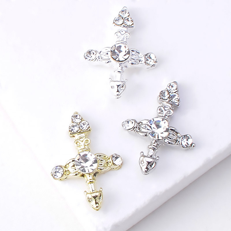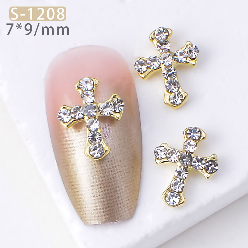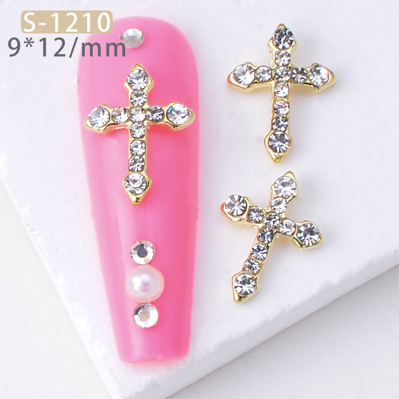 新款十字架穿戴甲饰品 镶钻锆石美甲配件欧美潮流指甲贴装装饰