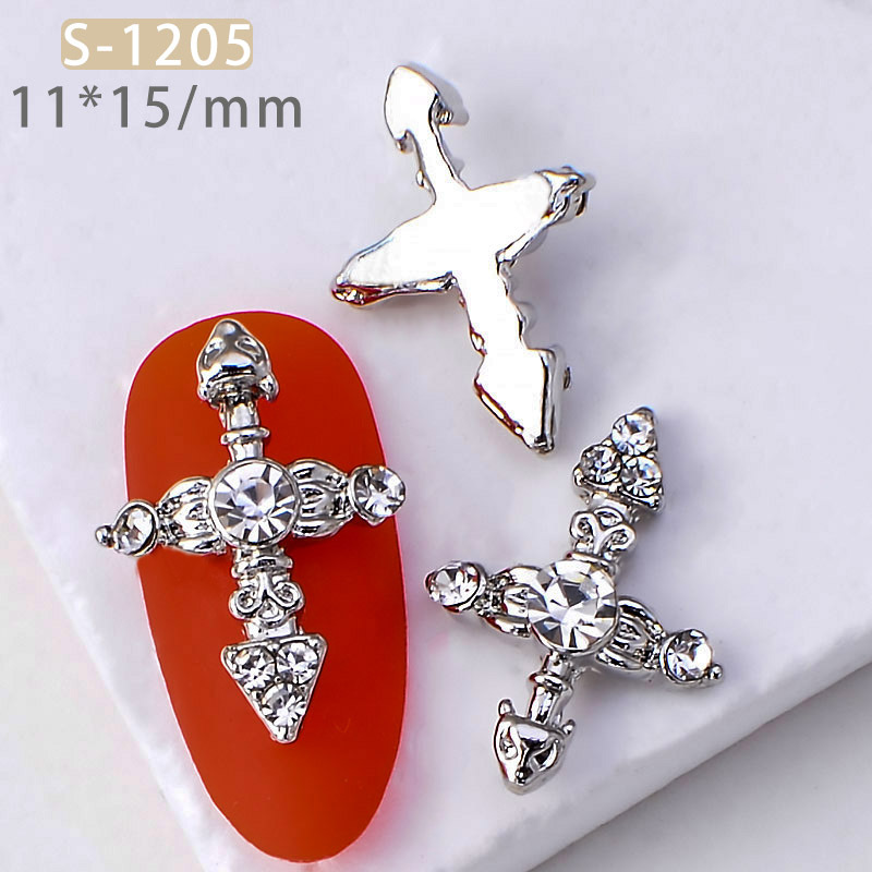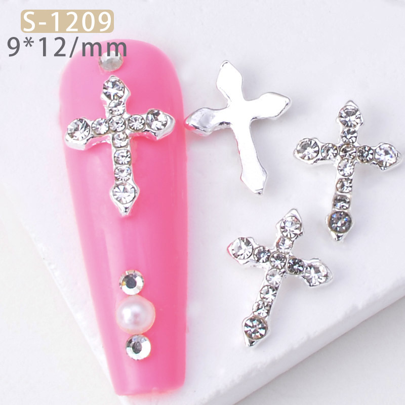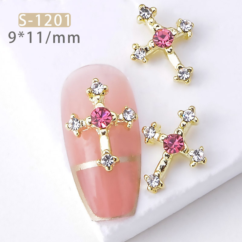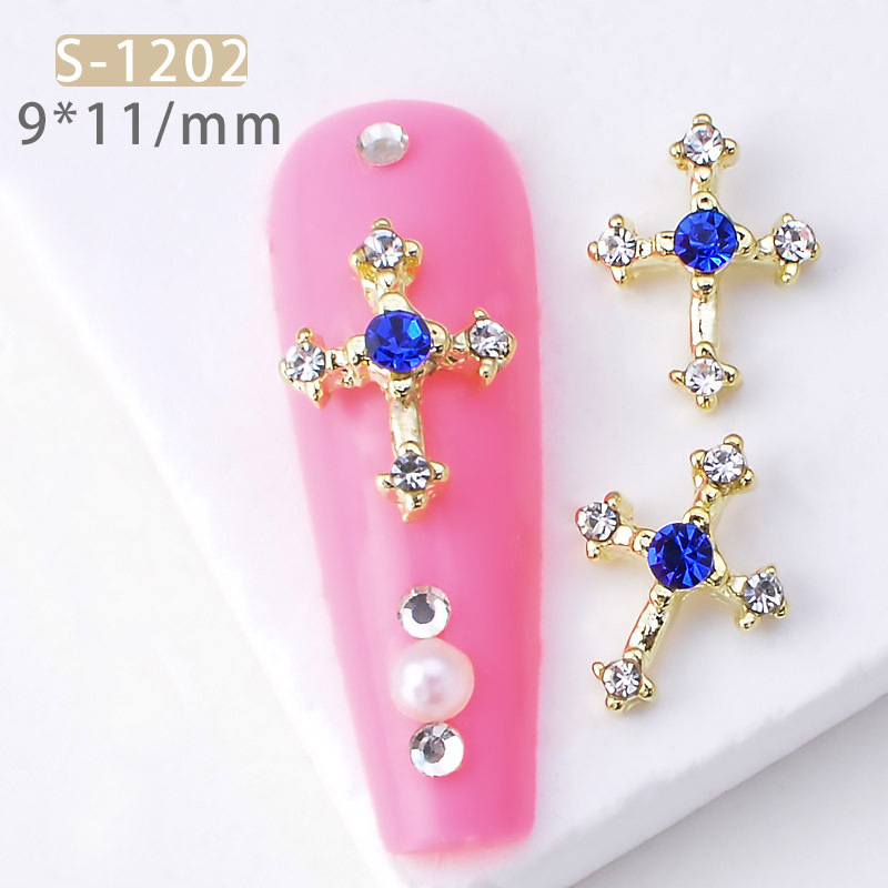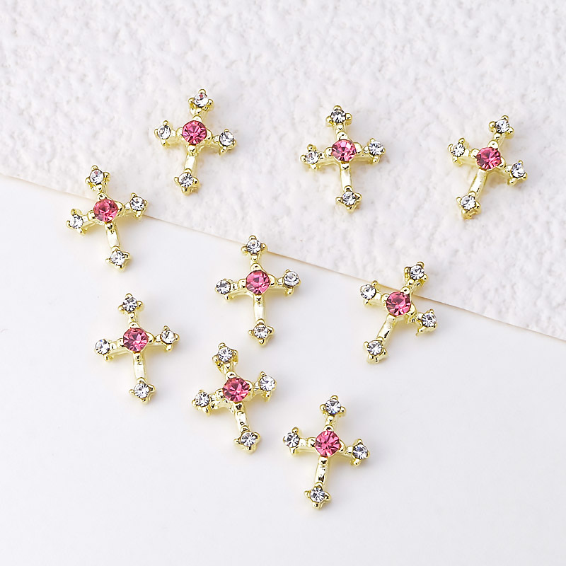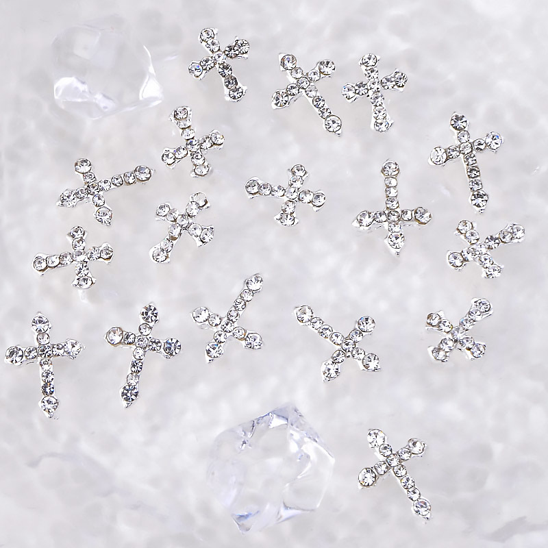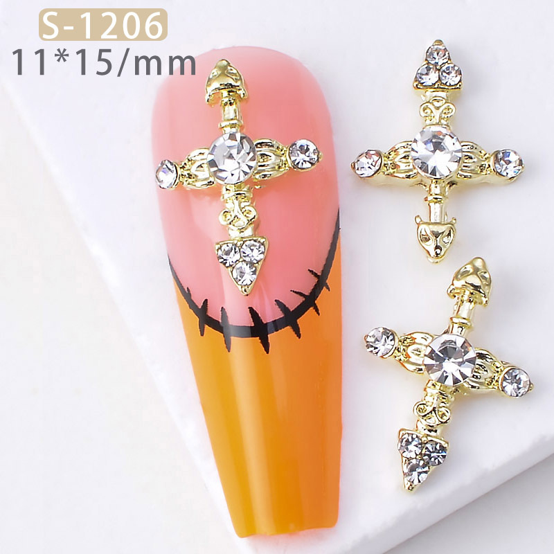 新款十字架穿戴甲饰品 镶钻锆石美甲配件欧美潮流指甲贴装装饰