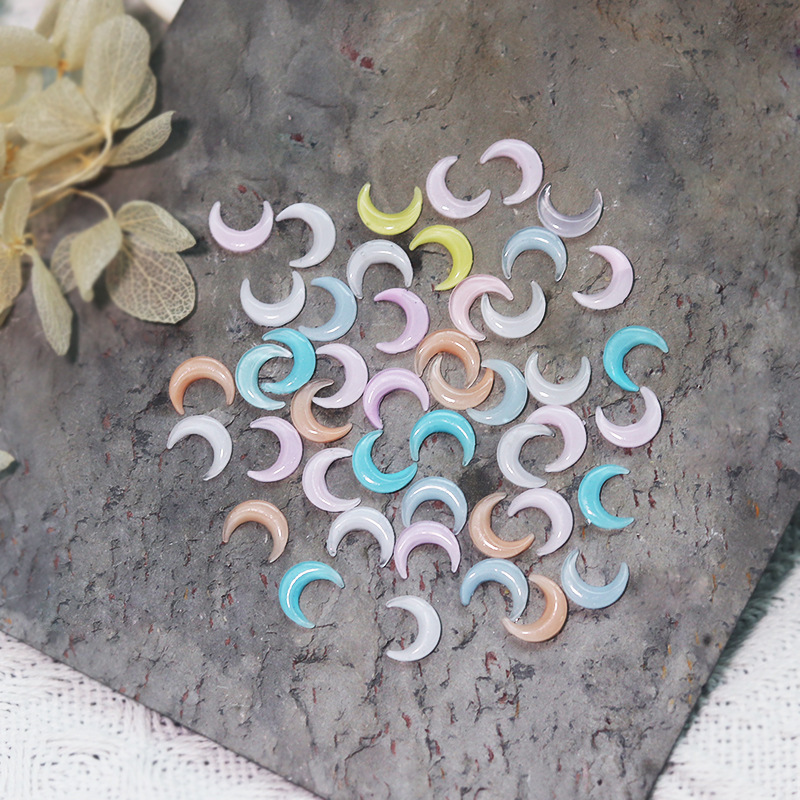 网红月亮美甲饰品小月牙树脂透彩立体冰透月亮穿戴甲指甲配饰批发