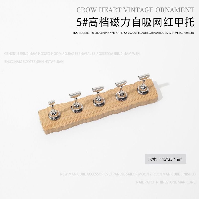 批发日式美甲练习底座原木极简风格甲托金属磁铁甲片托穿戴甲工具