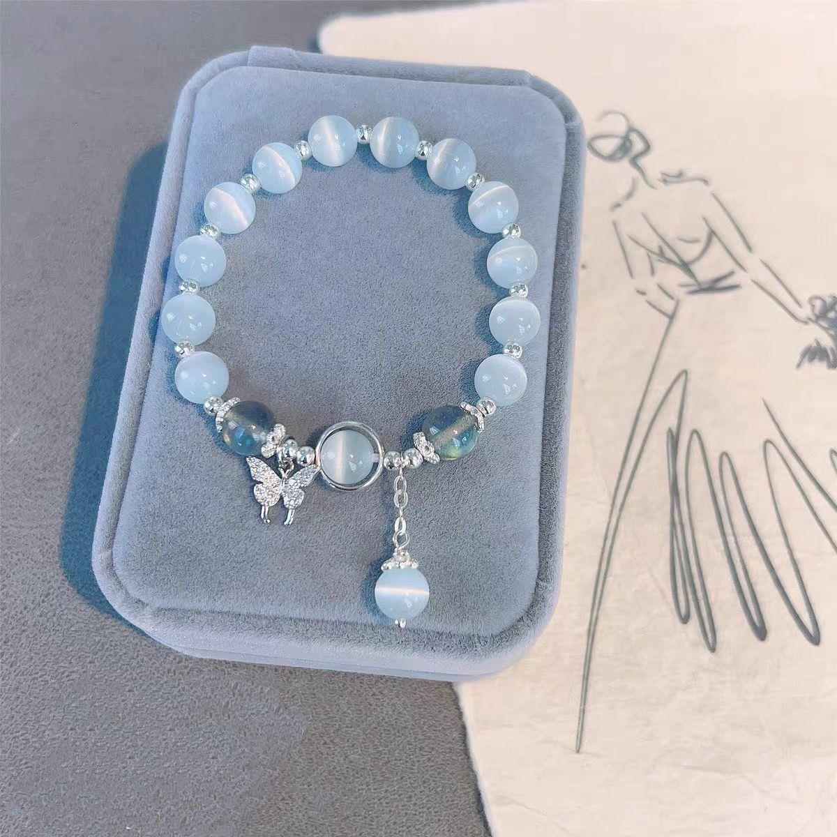 抖音网红仿猫眼石蓝月光ins平安喜乐吊坠手链简约学生女闺蜜礼物
