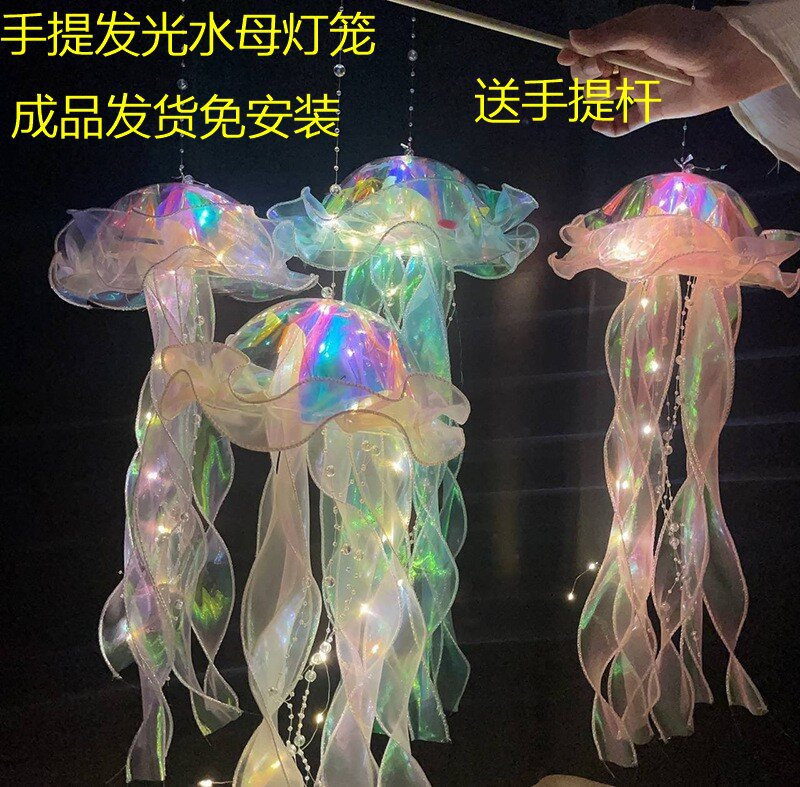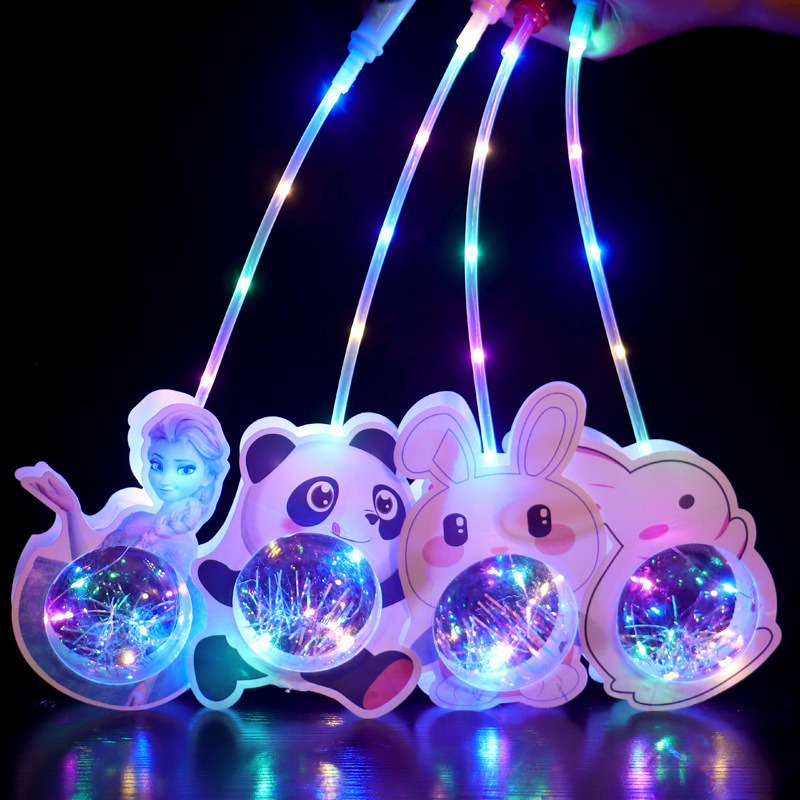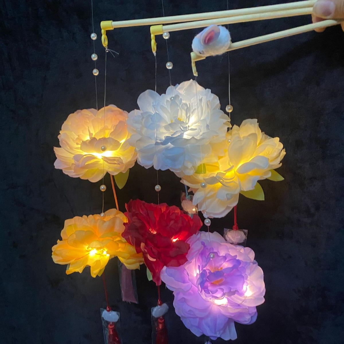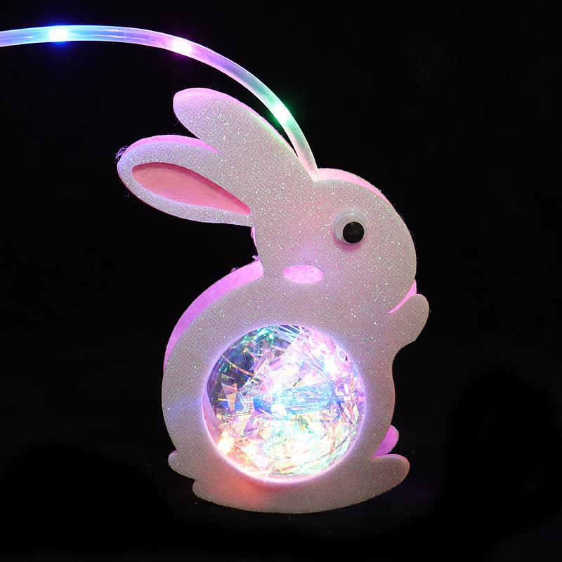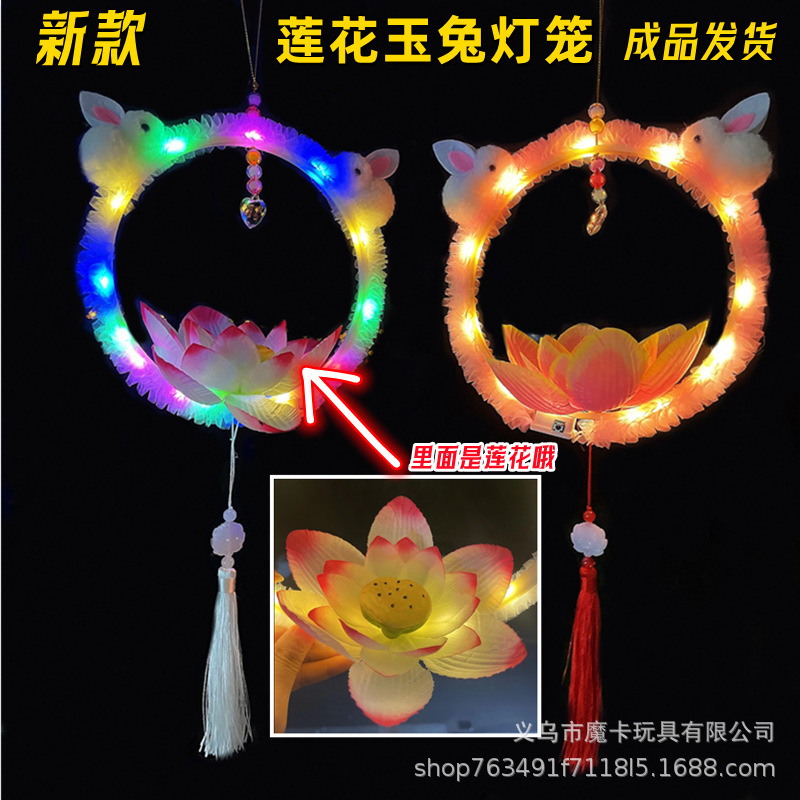 中秋节发光手提龙角玉兔荷花灯笼 春节元宵花灯 七彩卡通闪光玩具