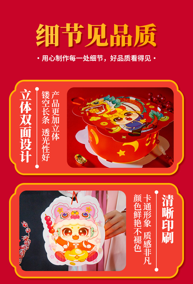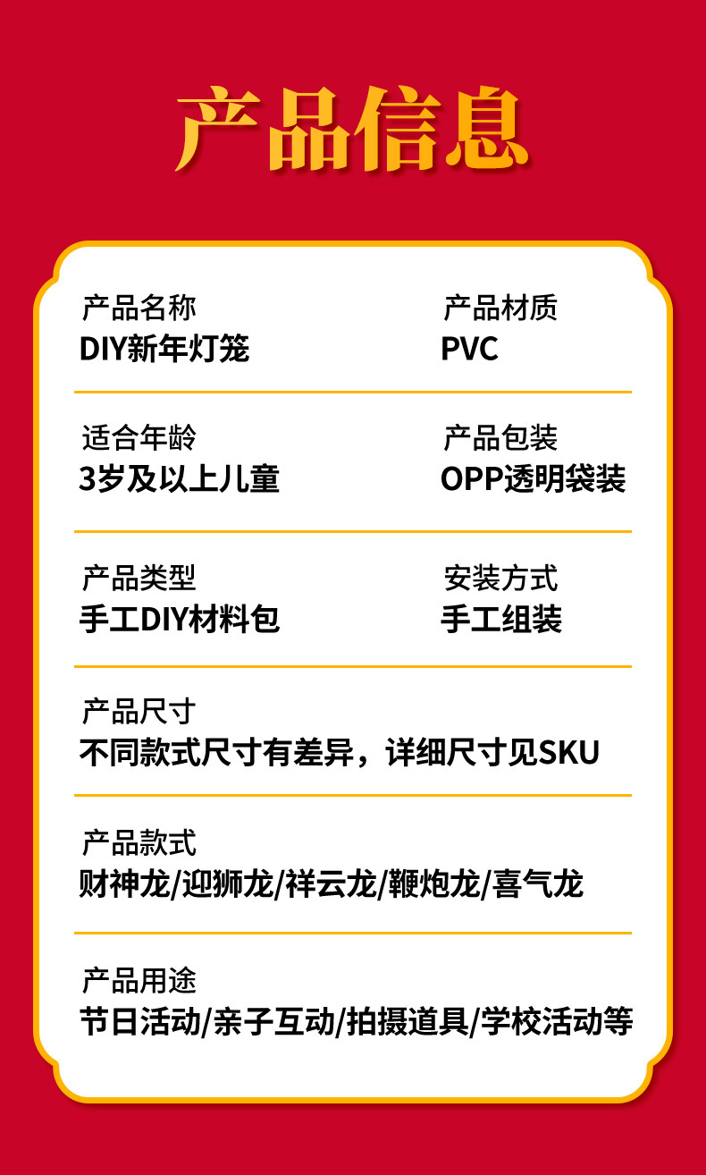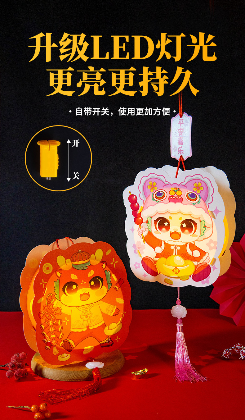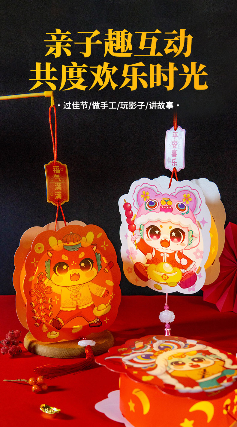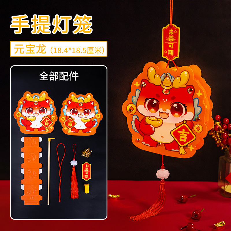 龙年花灯传统国潮灯笼元宵节中秋节儿童手提DIY灯笼摆摊夜光玩具