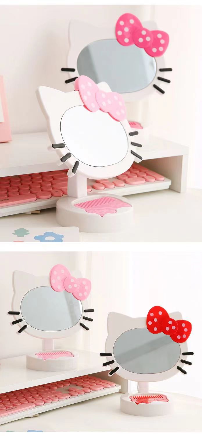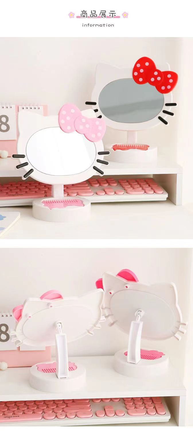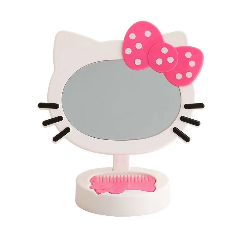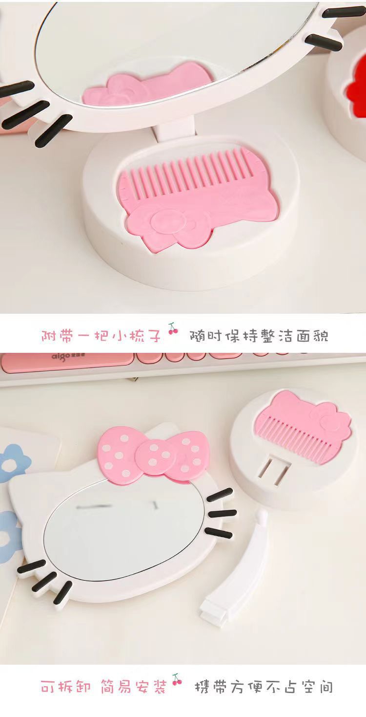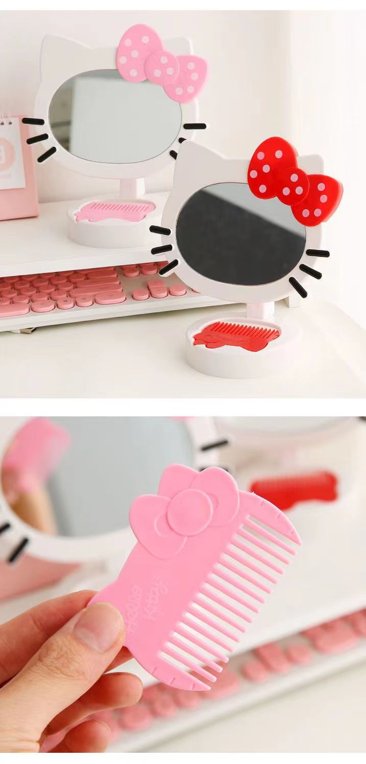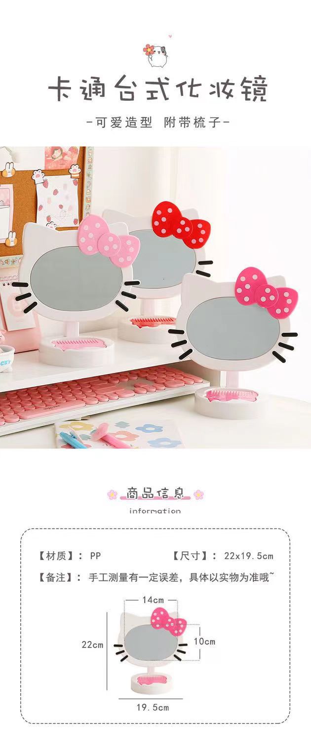 创意卡通可爱化妆镜带梳子桌面补妆台镜宿舍便携猫咪化妆镜子批发