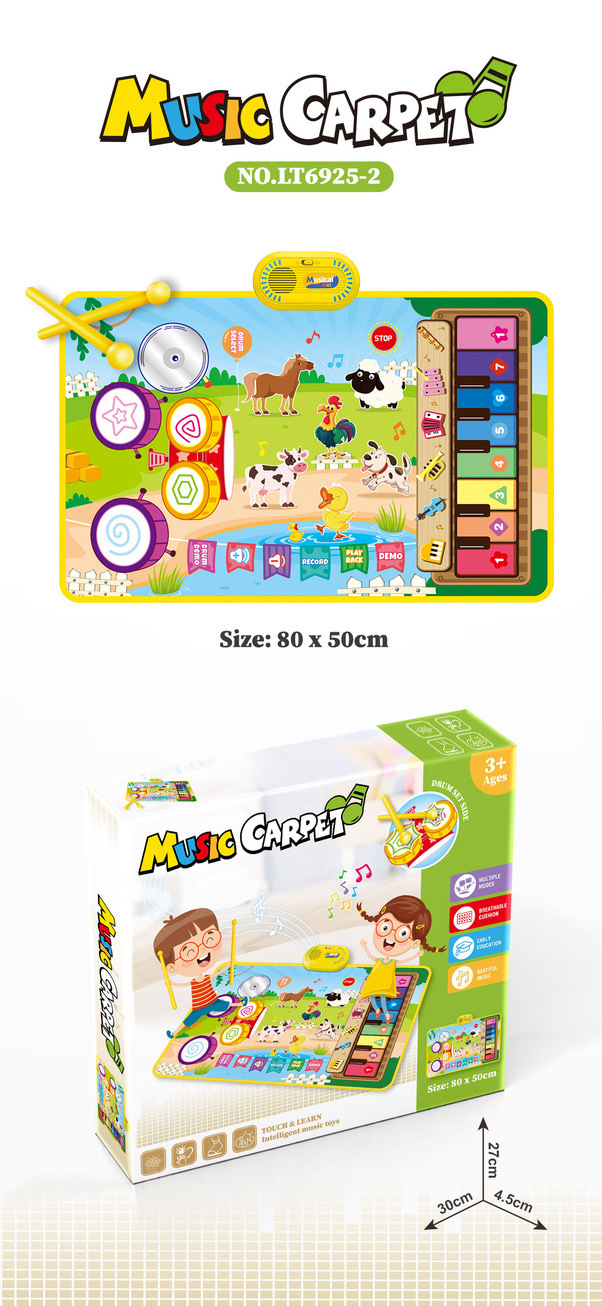 新品儿童早教爵士鼓带鼓棒脚踩毯钢琴键防水材质音乐毯玩具架子鼓