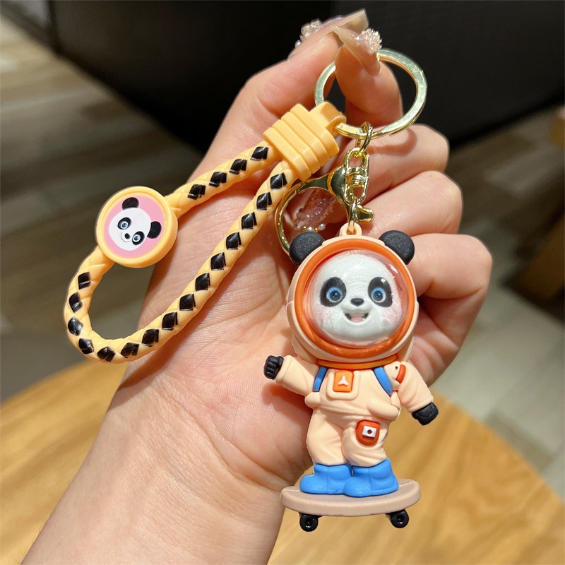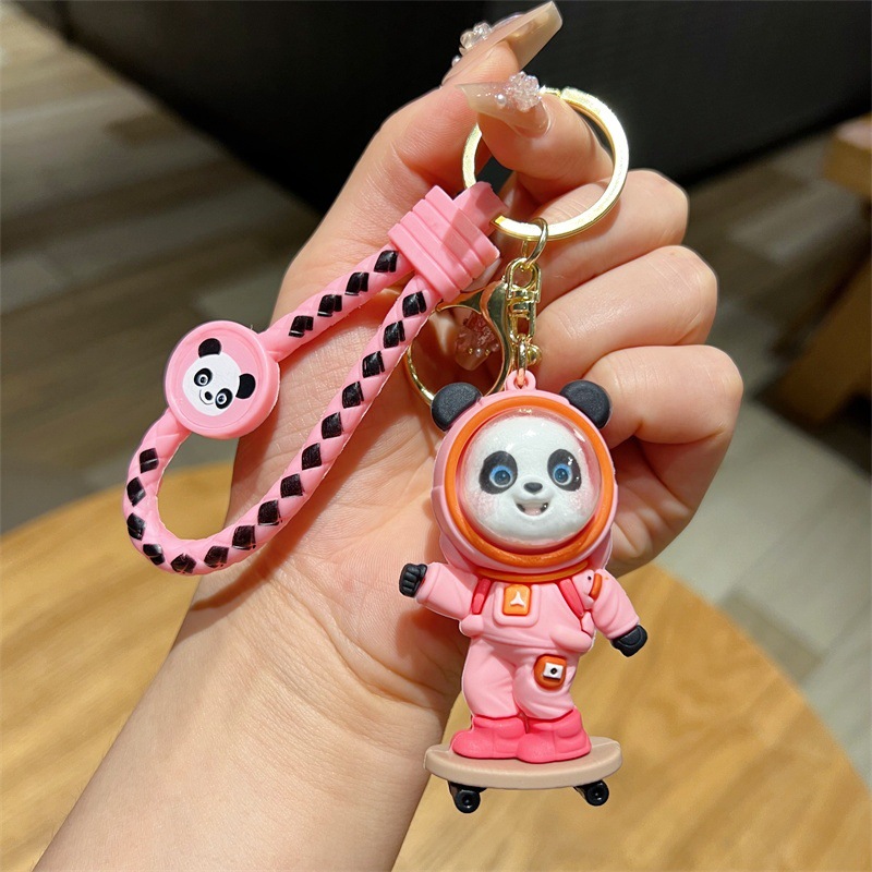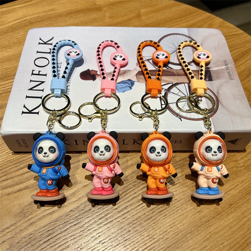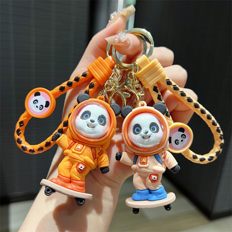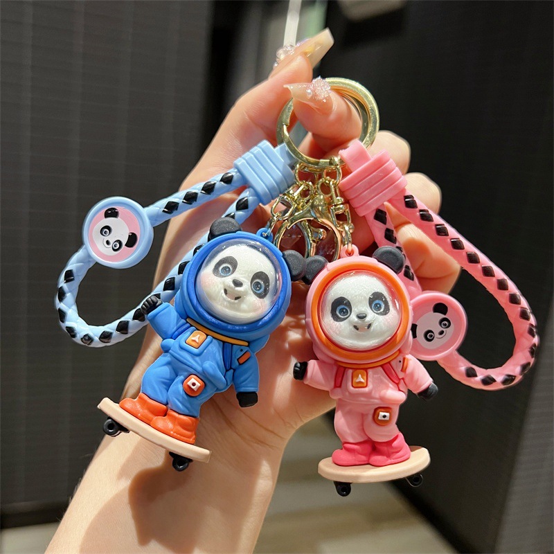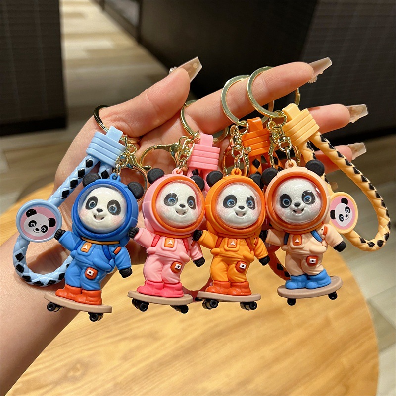 创意卡通滑板熊猫钥匙扣可爱太空服滑板熊猫钥匙链男女包包小礼品