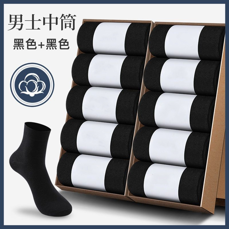 一件代发袜子男士中筒秋冬季新款黑色商务纯色棉男袜袜子批发市场