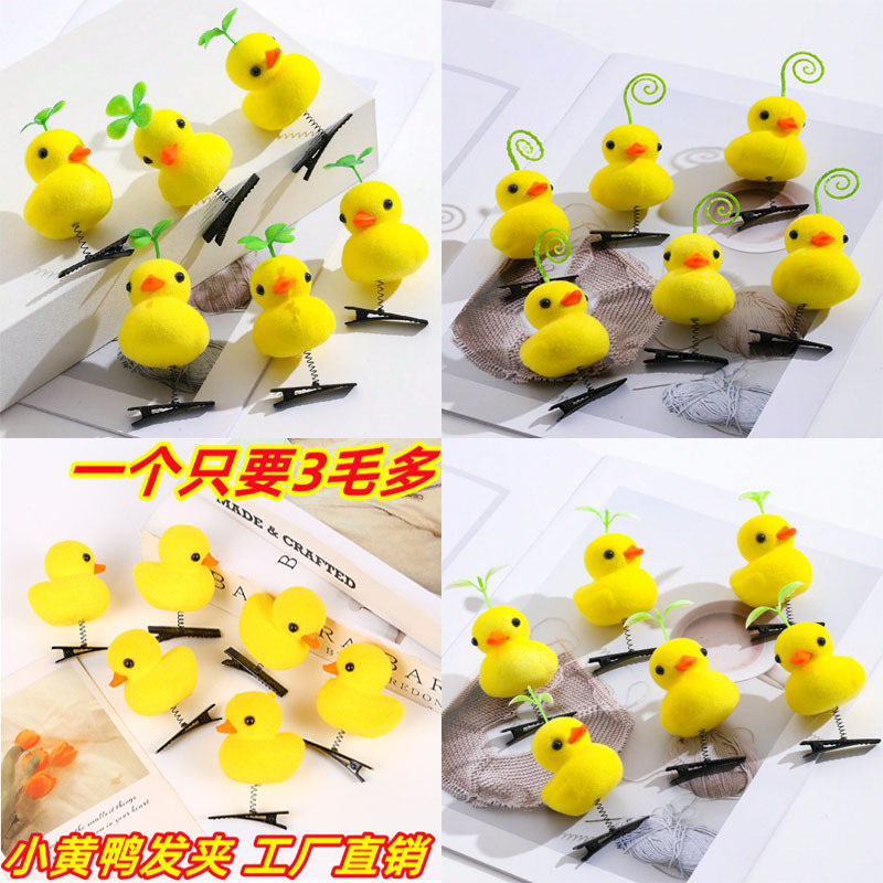 新款网红卖萌小黄鸭发夹鸭子头饰儿童立体弹簧头饰玩具地摊礼品爱