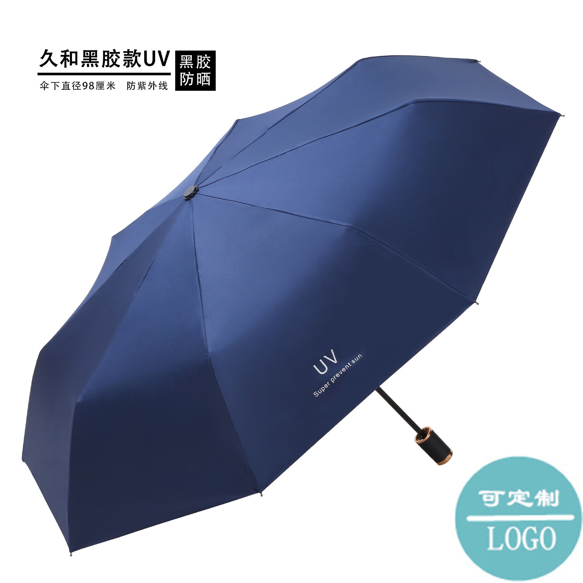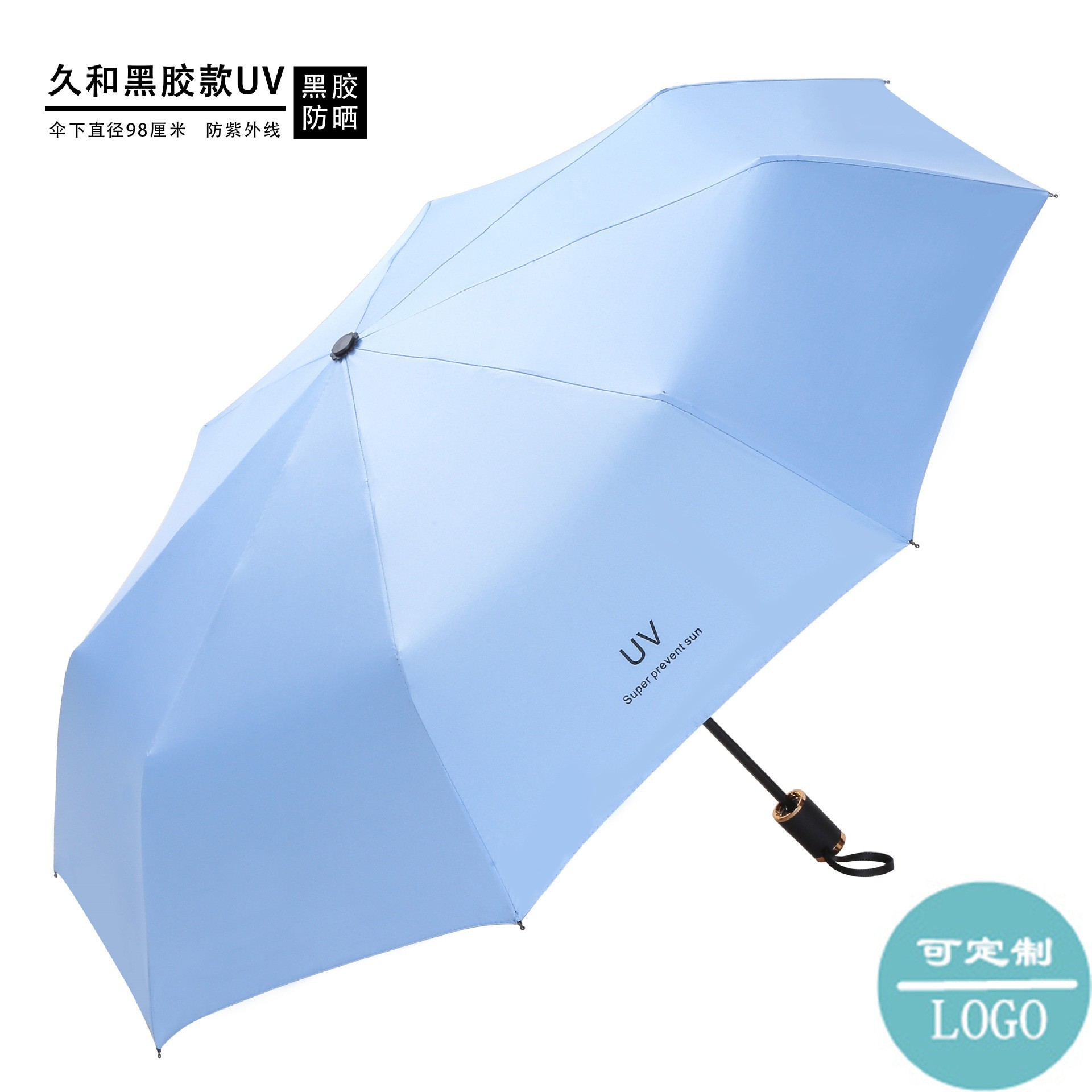 厂家批发自动三折晴雨伞折叠黑胶防晒定遮阳印刷广告伞制logo印字