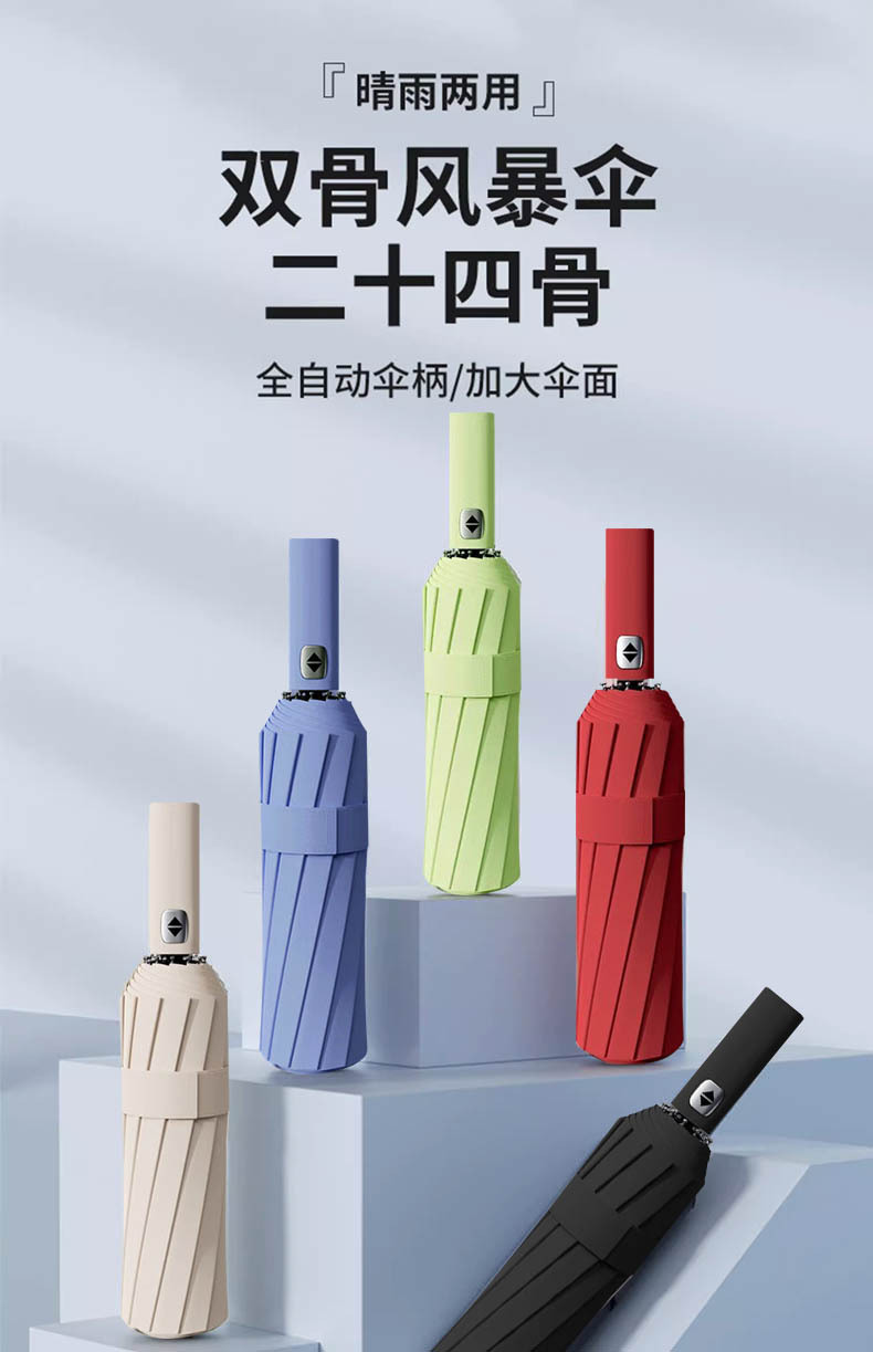 24骨全自动雨伞黑胶遮阳防晒太阳伞男士晴雨两用折叠广告雨伞定制
