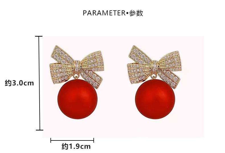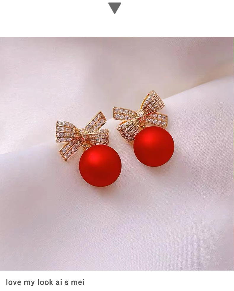 红色蝴蝶结珍珠耳环女2023年新款潮时尚气质百搭耳钉