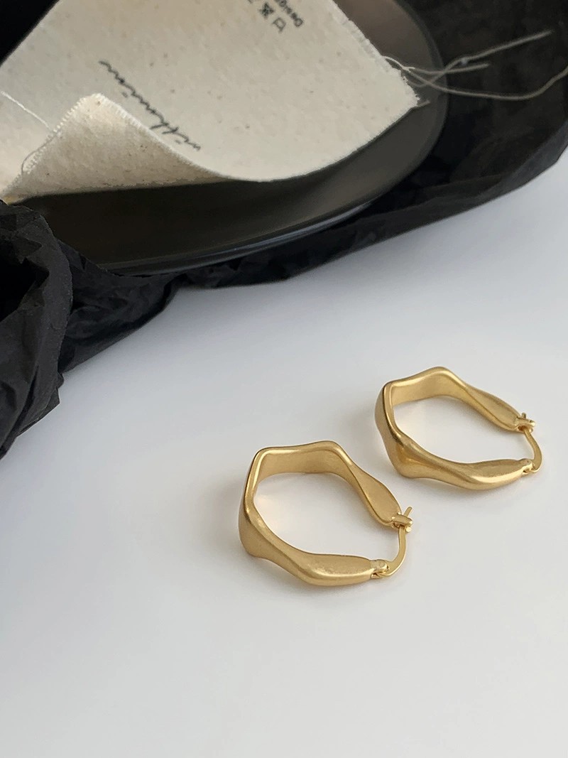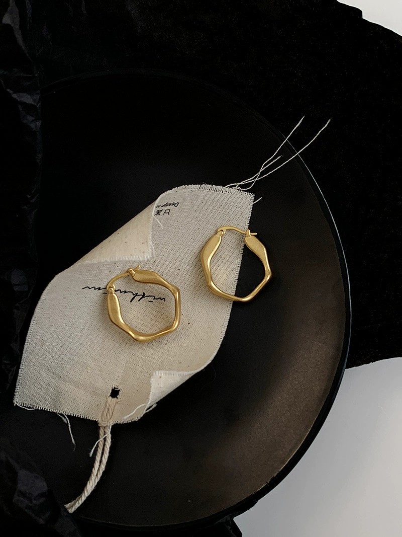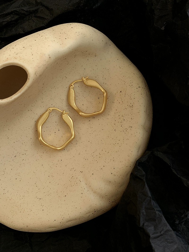 简约港风六边形圆圈耳环金属耳圈法式个性高级感金属气质耳饰