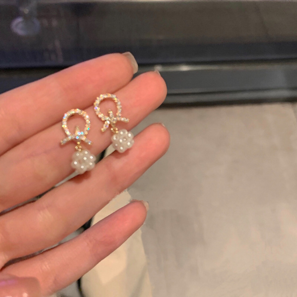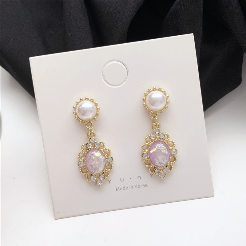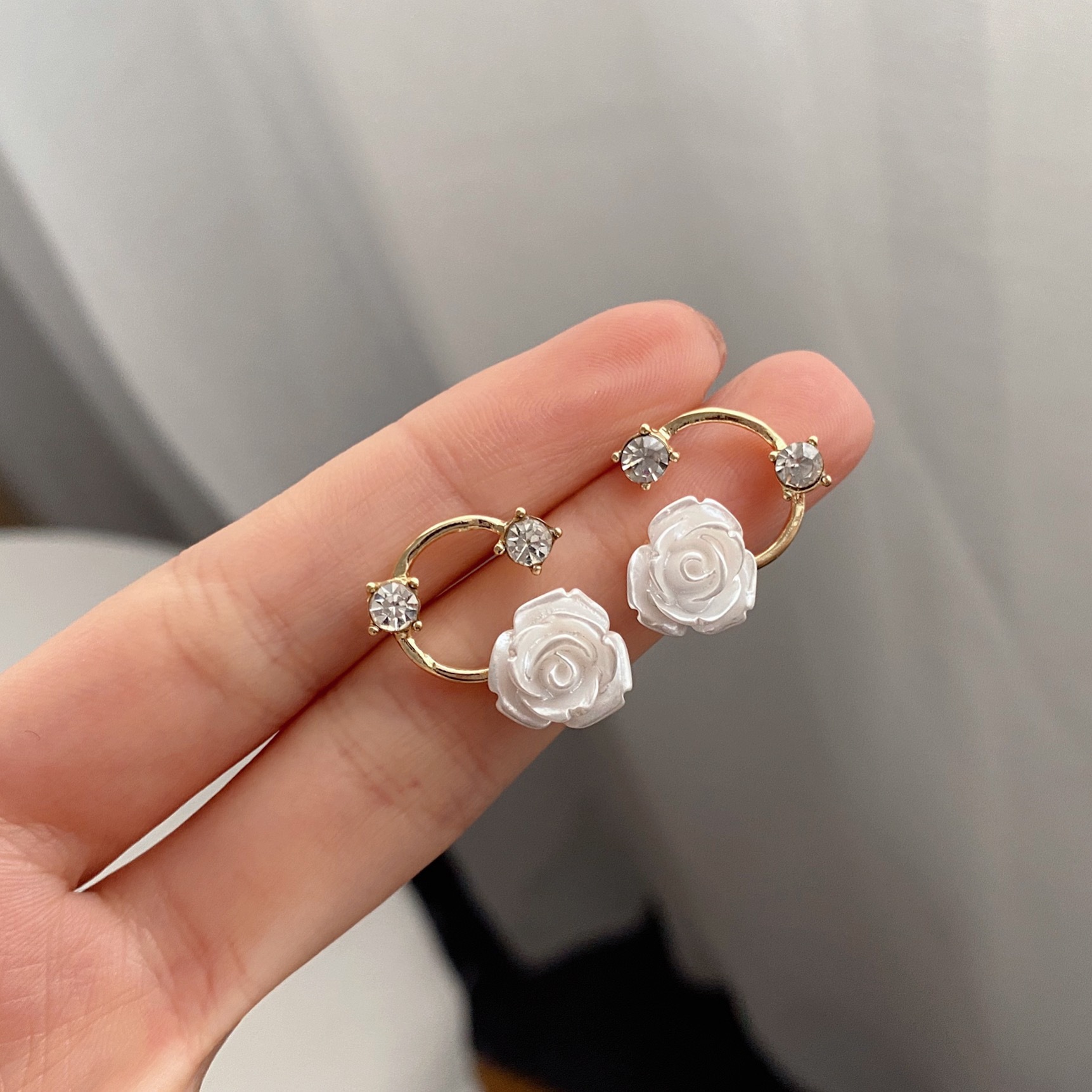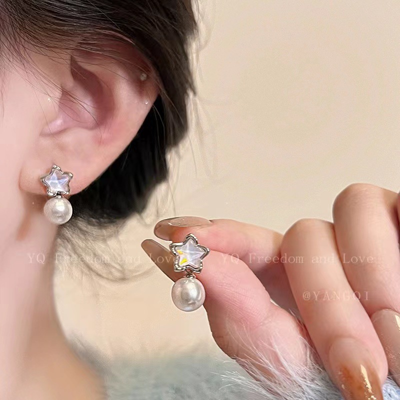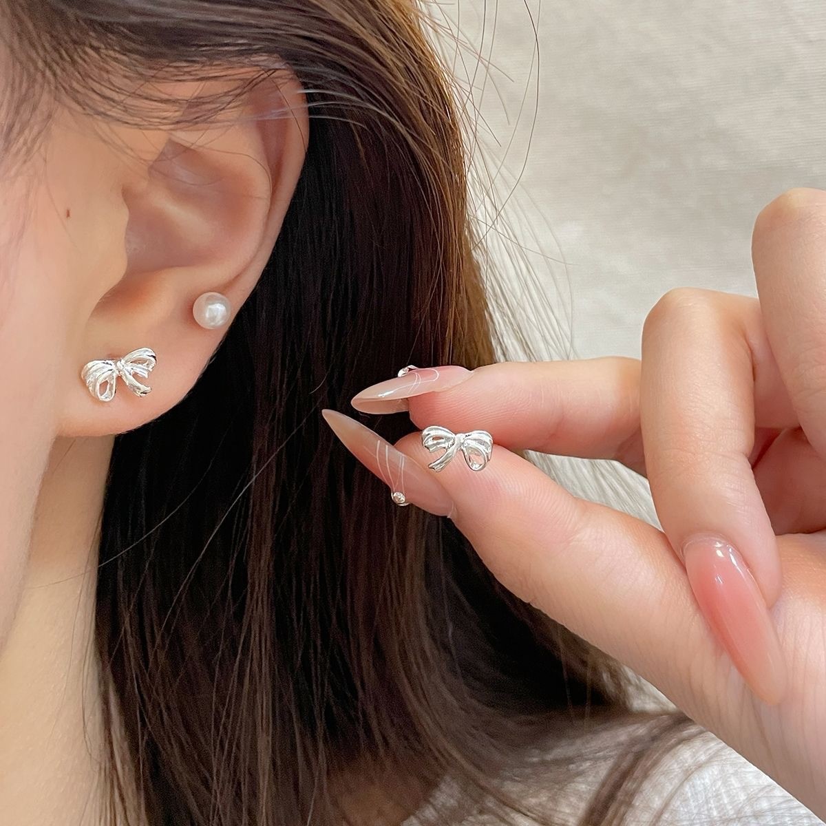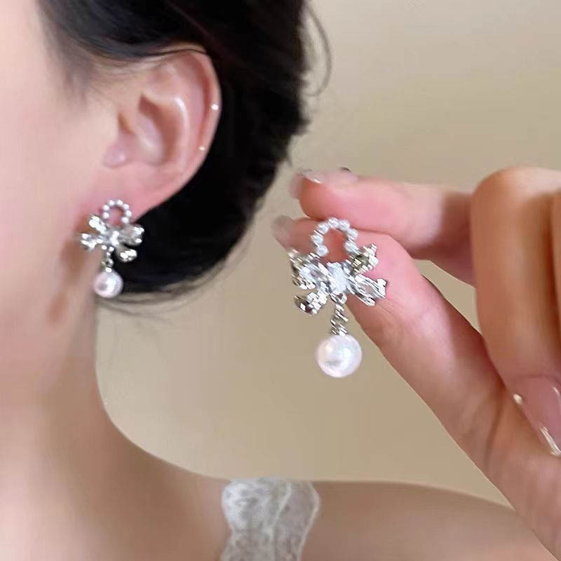 S925耳环银针高级感耳饰女小众耳钉复古珍珠花朵气质饰品批发摆摊