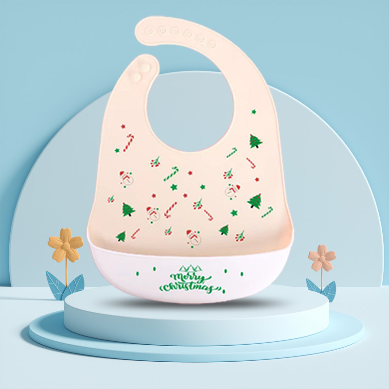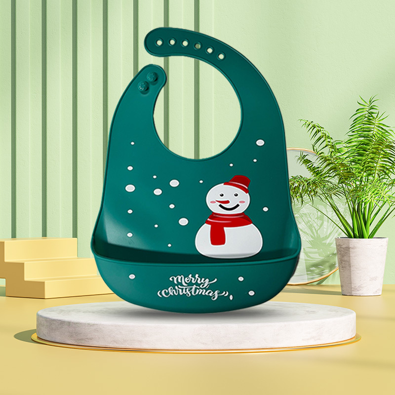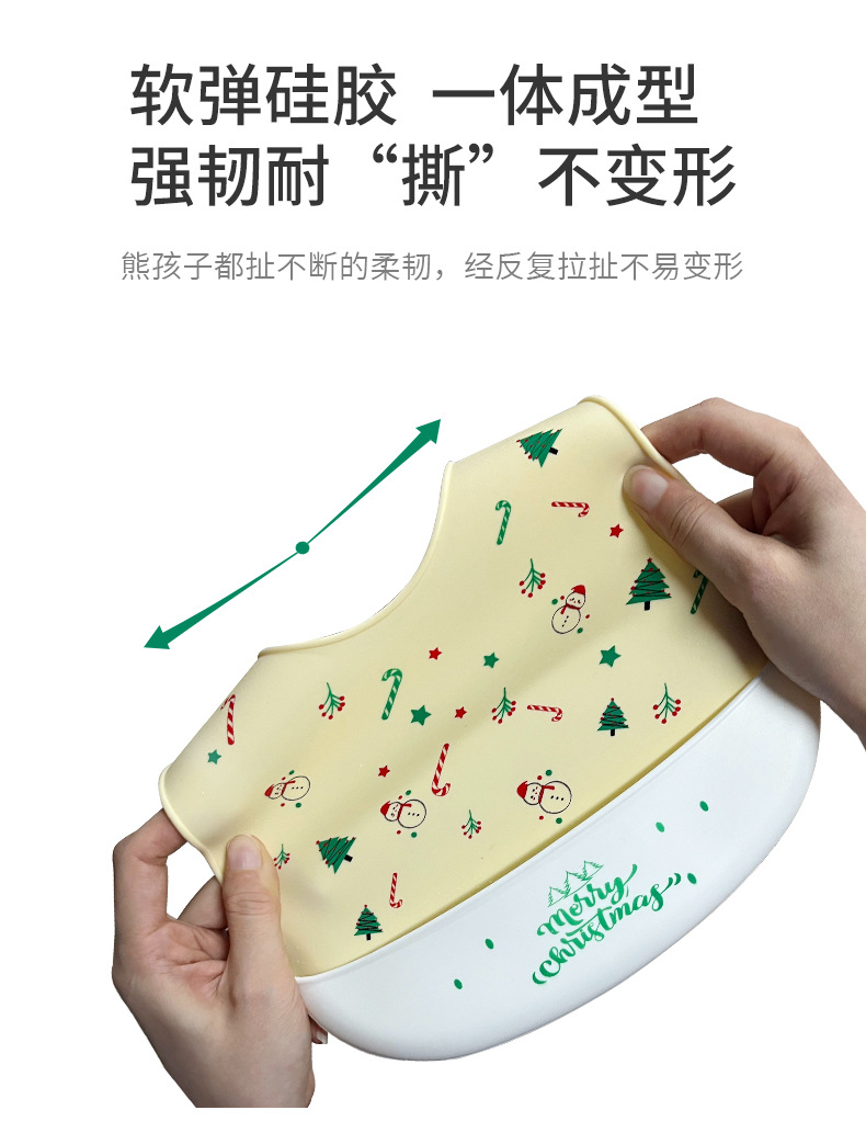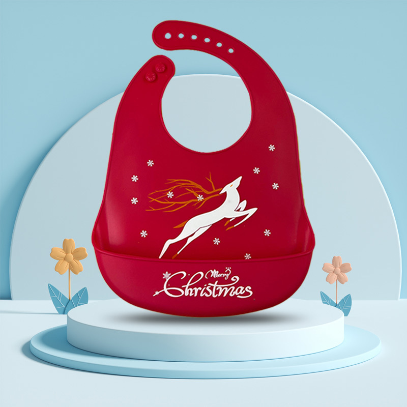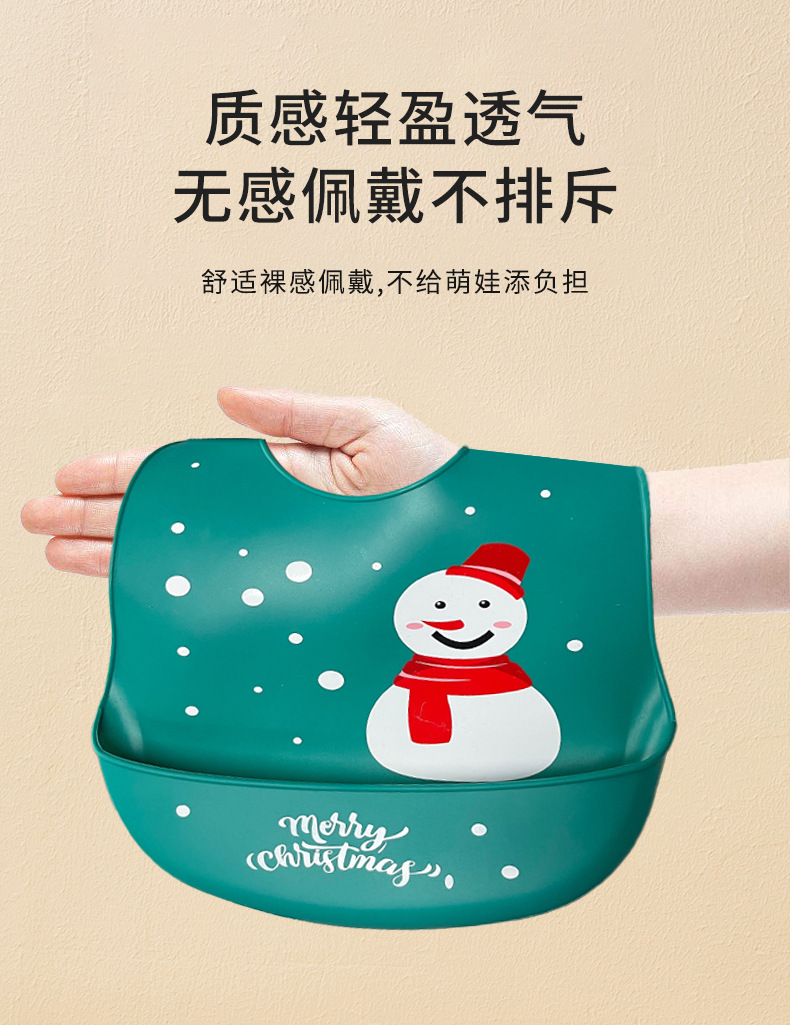 跨境圣诞款宝宝吃饭围嘴硅胶围兜婴儿饭兜婴幼儿口水兜防水食饭兜