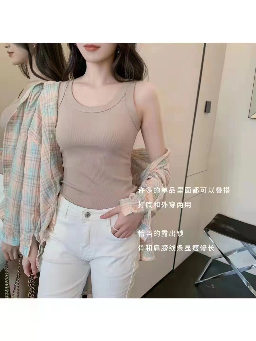 抖音爆款螺纹棉吊带背心女防走光内搭遮副乳打底无袖上衣一件代发