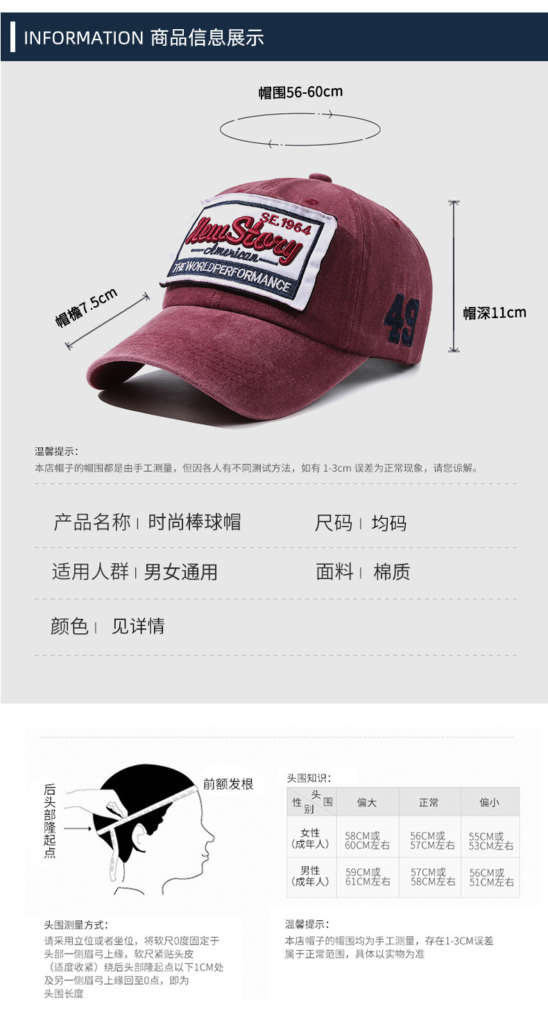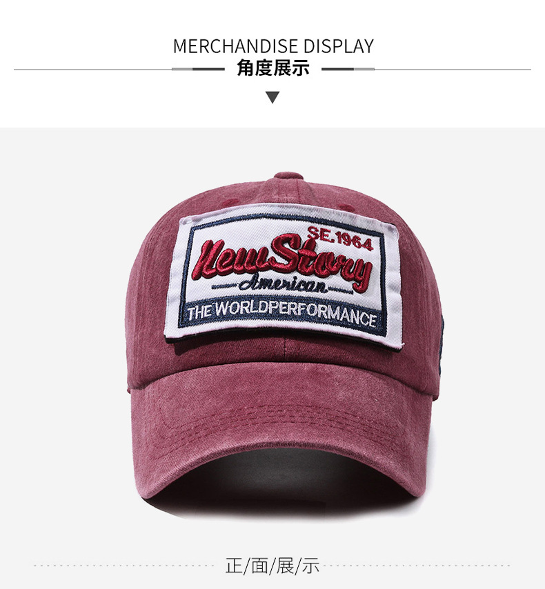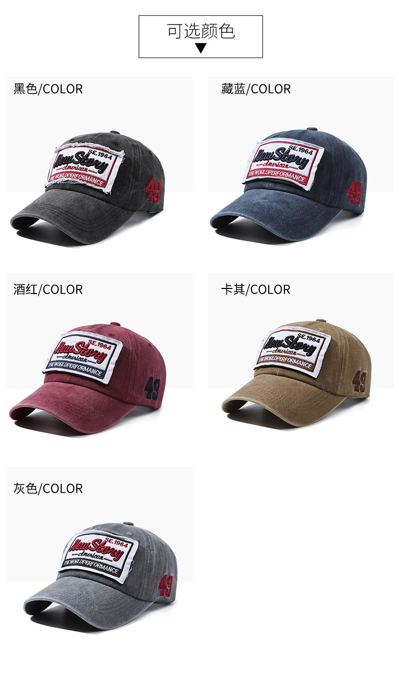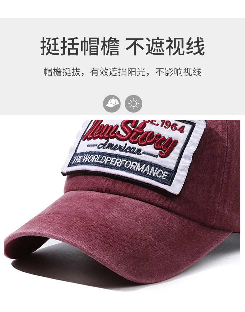 帽子男女春夏棒球帽水洗布做旧字母刺绣弯沿鸭舌帽百搭复古情侣帽