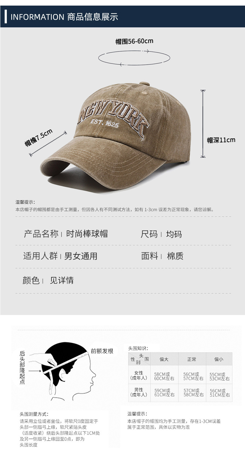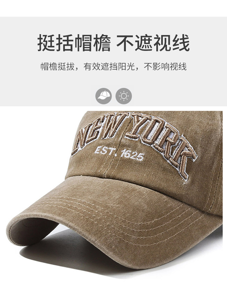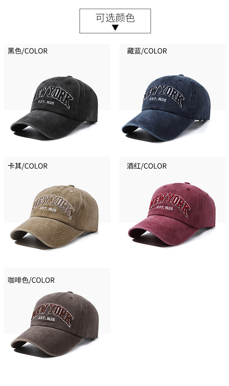 棒球帽男刺绣复古做旧水洗休闲鸭舌帽女春夏季街头百搭弯檐遮阳帽