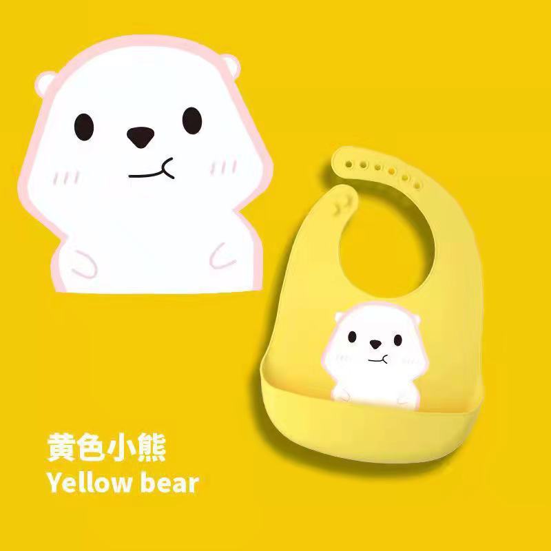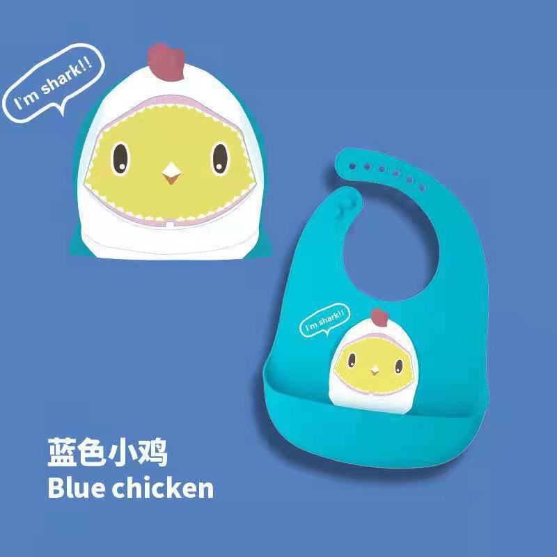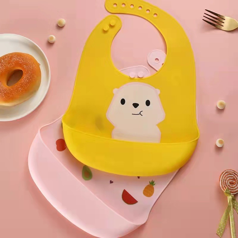 新款宝宝儿童硅胶饭兜婴幼儿学吃饭易清洗防污卡通印花口水兜可调