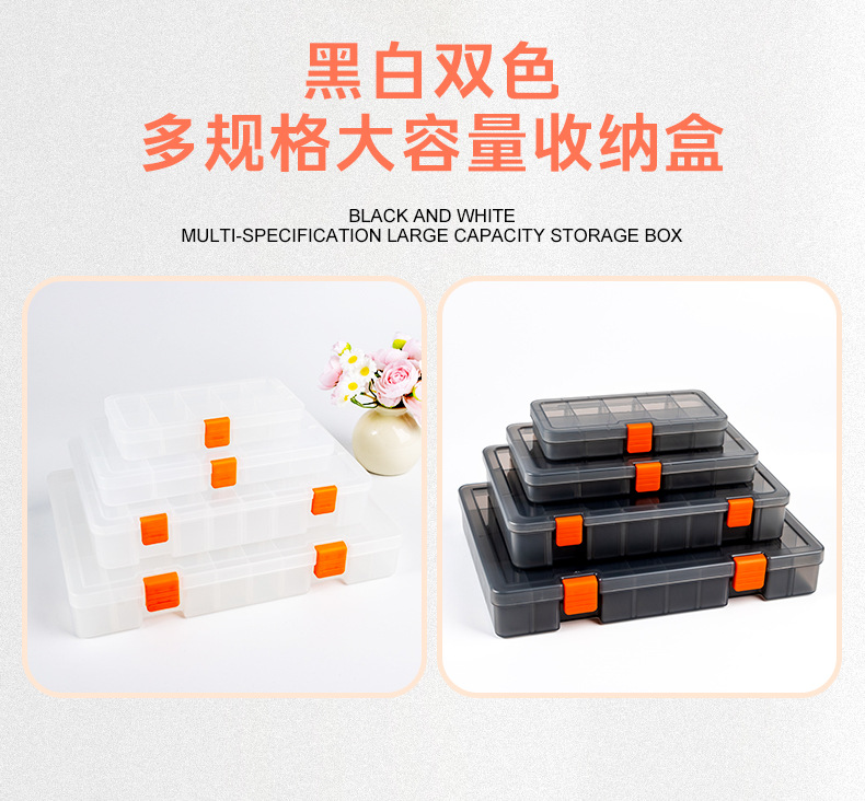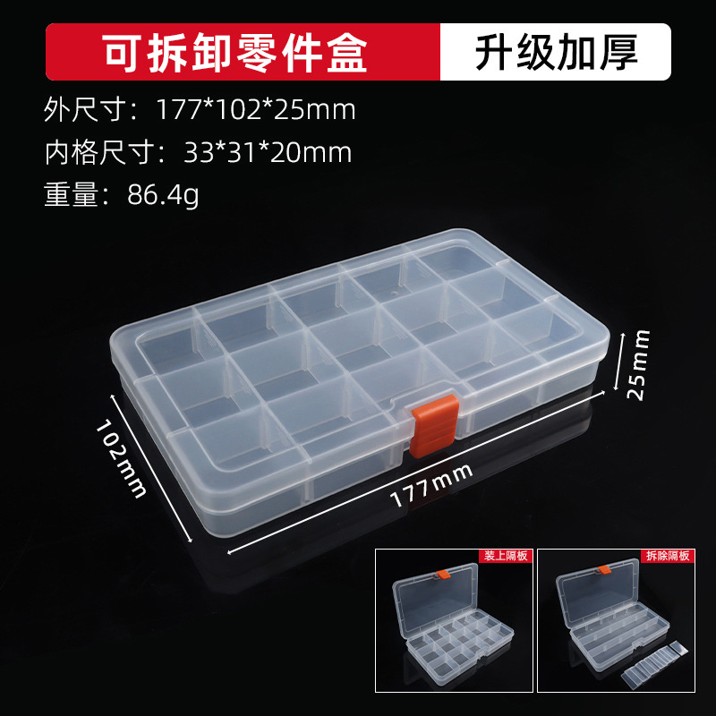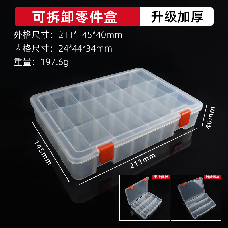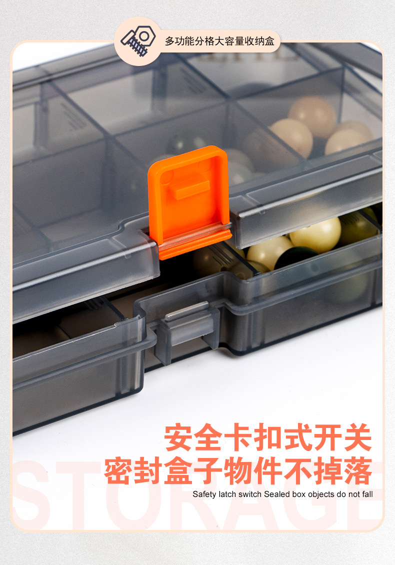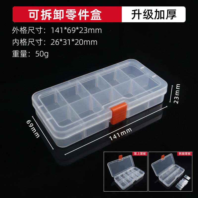 带盖可拆渔具收纳盒多格螺丝零件盒透明塑料零食盒桌面盒子元件盒