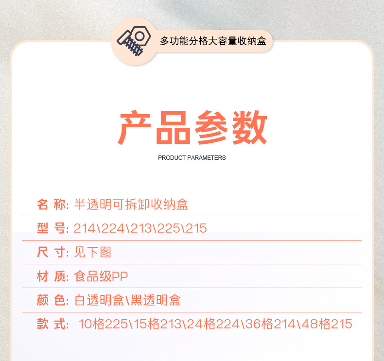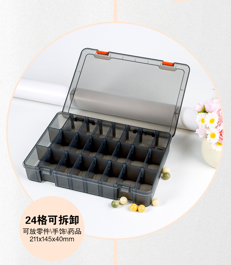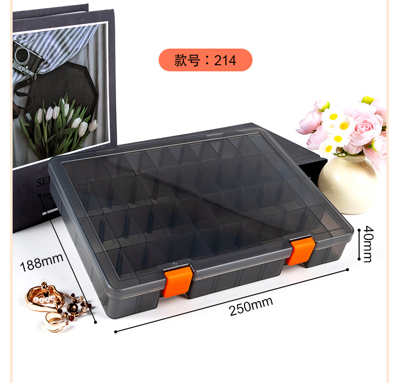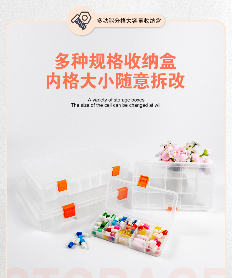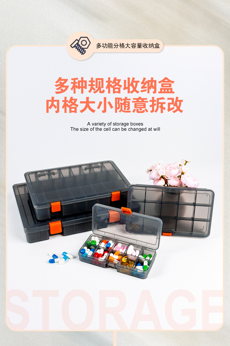带盖可拆渔具收纳盒多格螺丝零件盒透明塑料零食盒桌面盒子元件盒