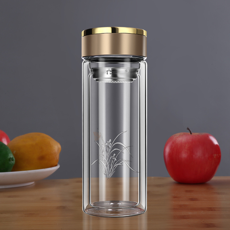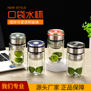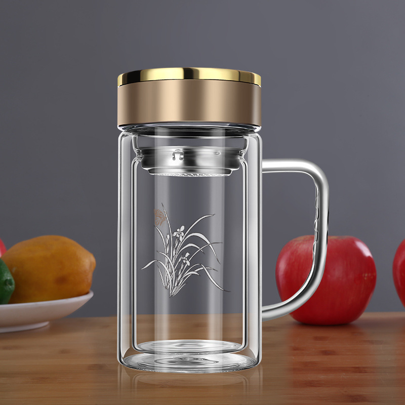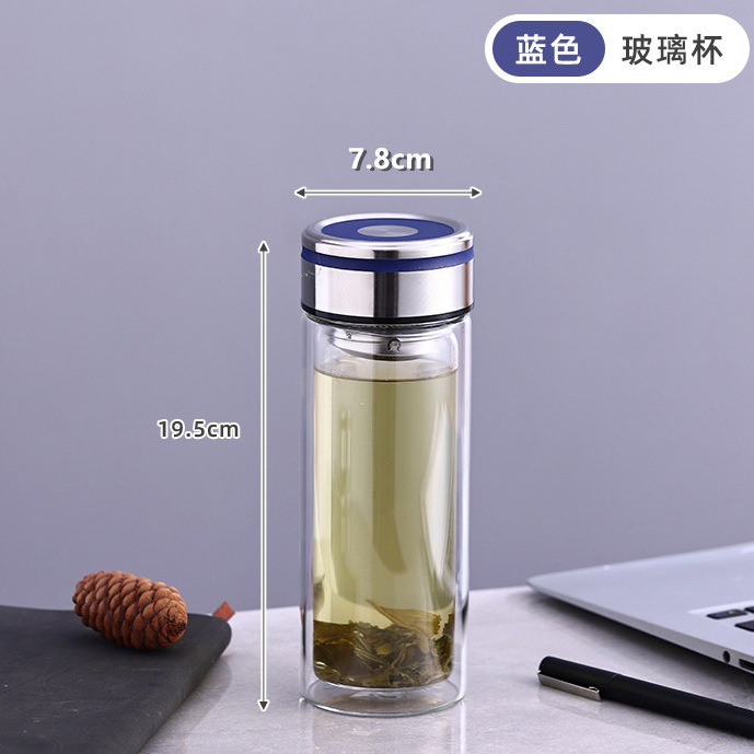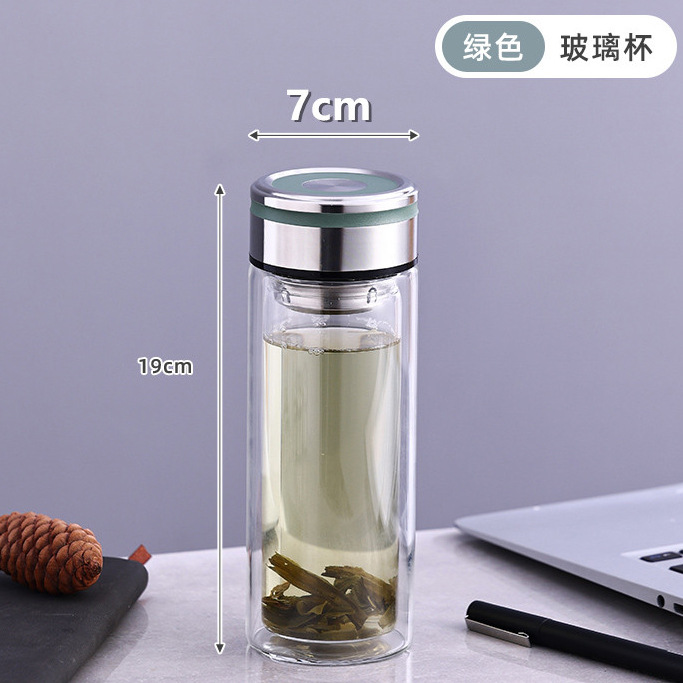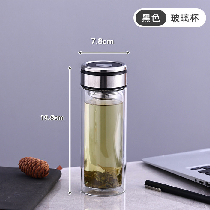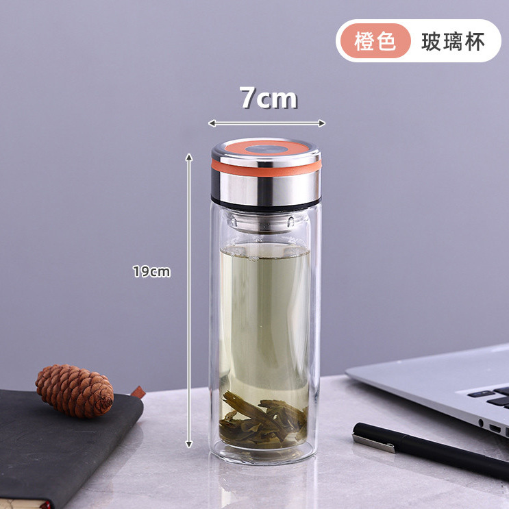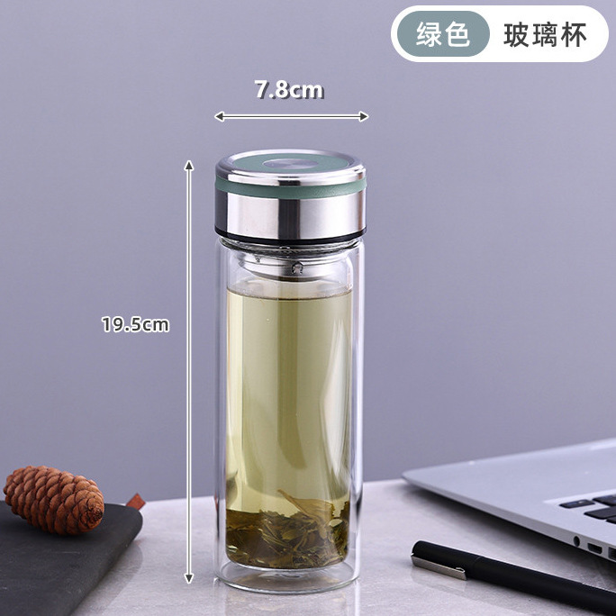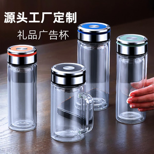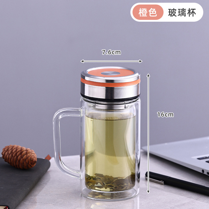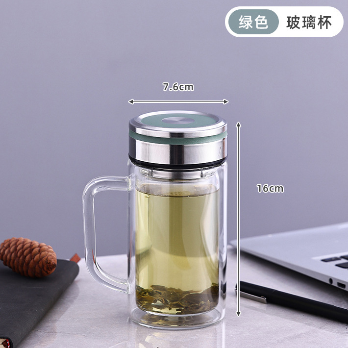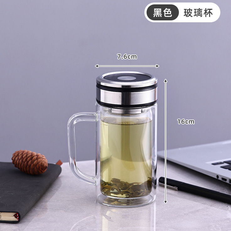 杯子玻璃透明双层创意玻璃杯家用耐高温大容量带盖商务泡茶杯批发