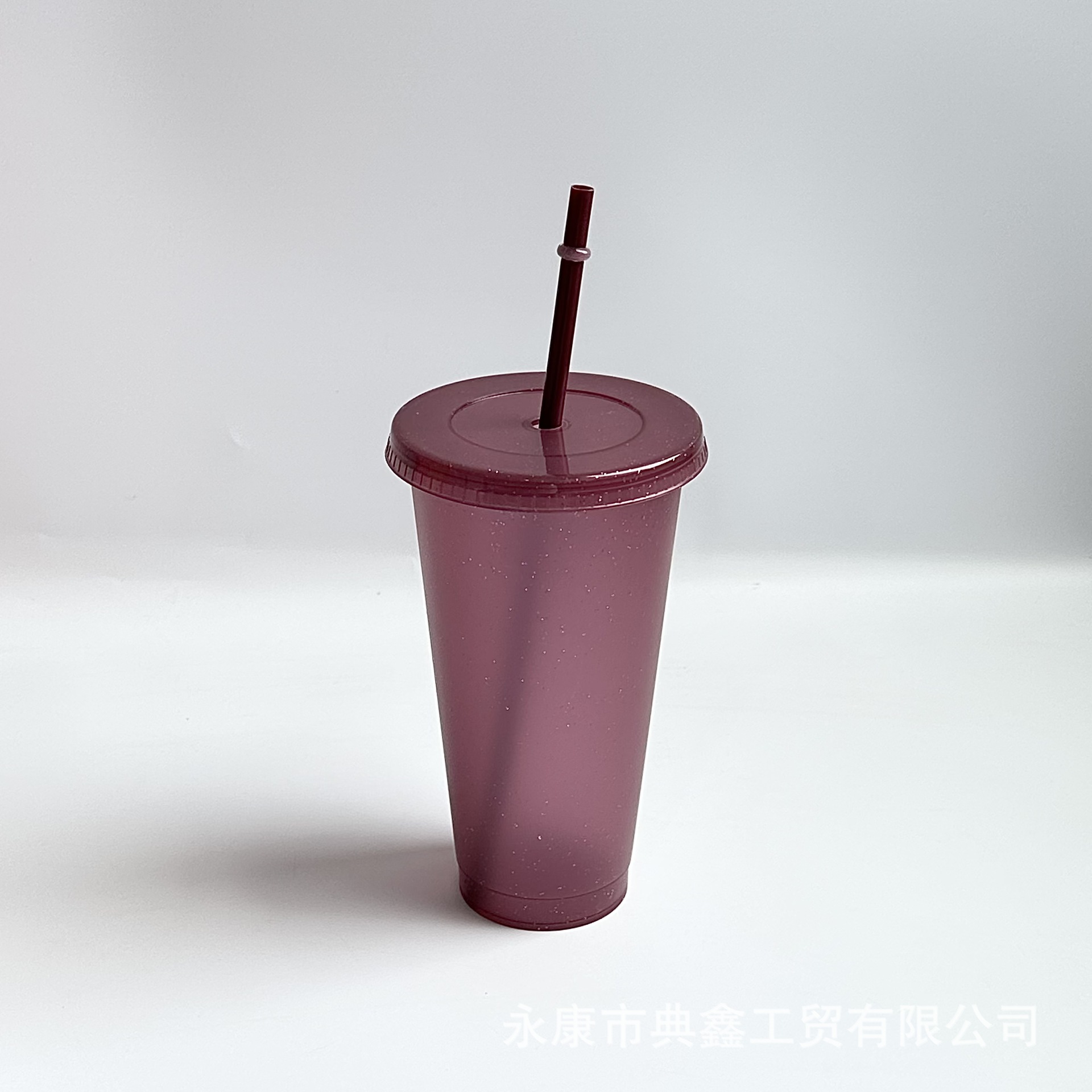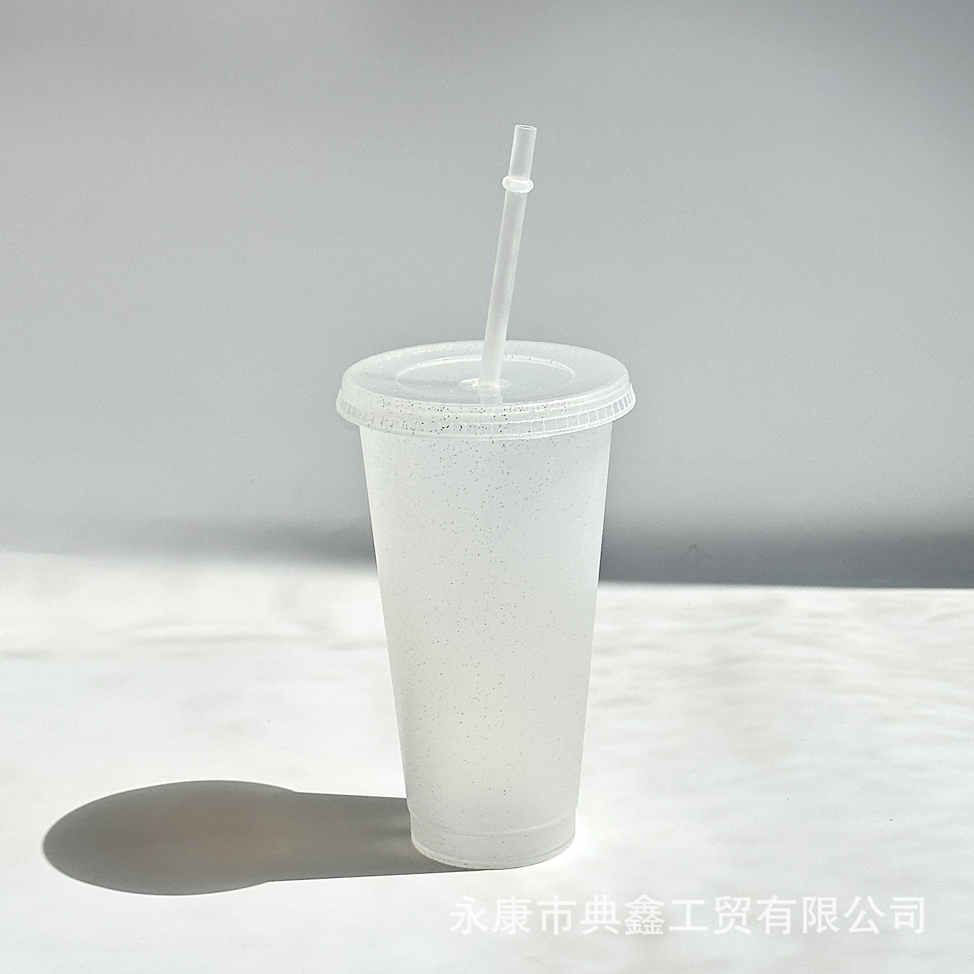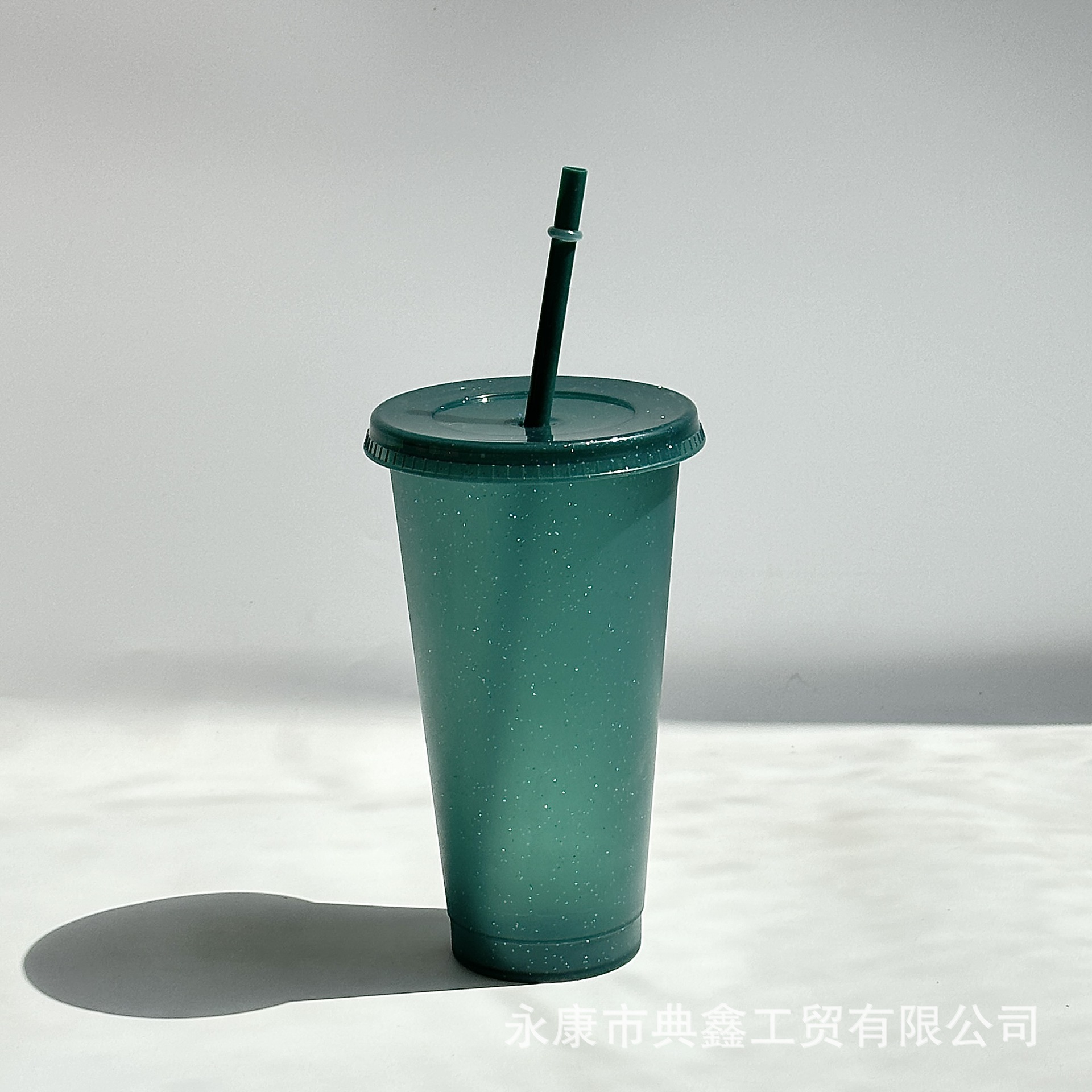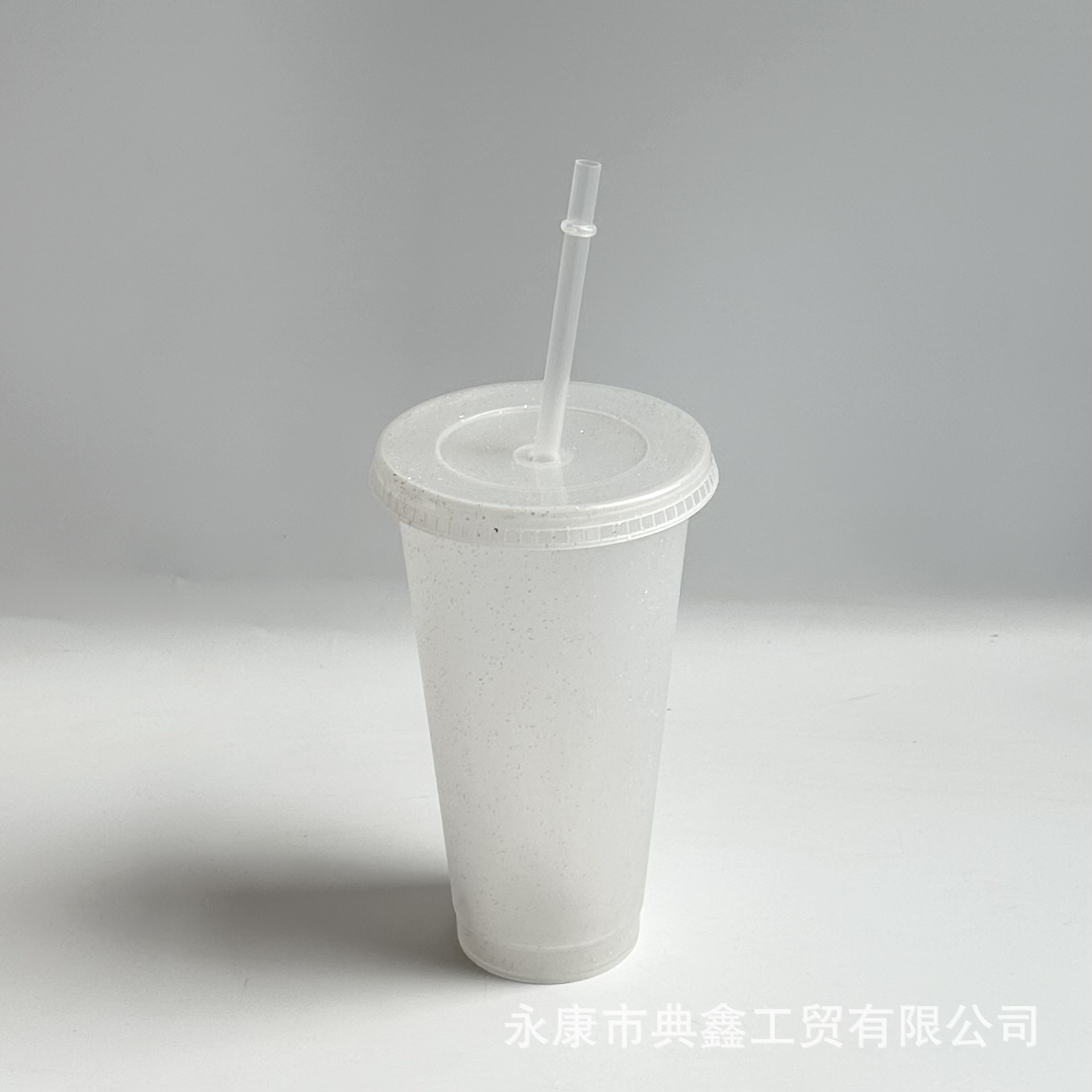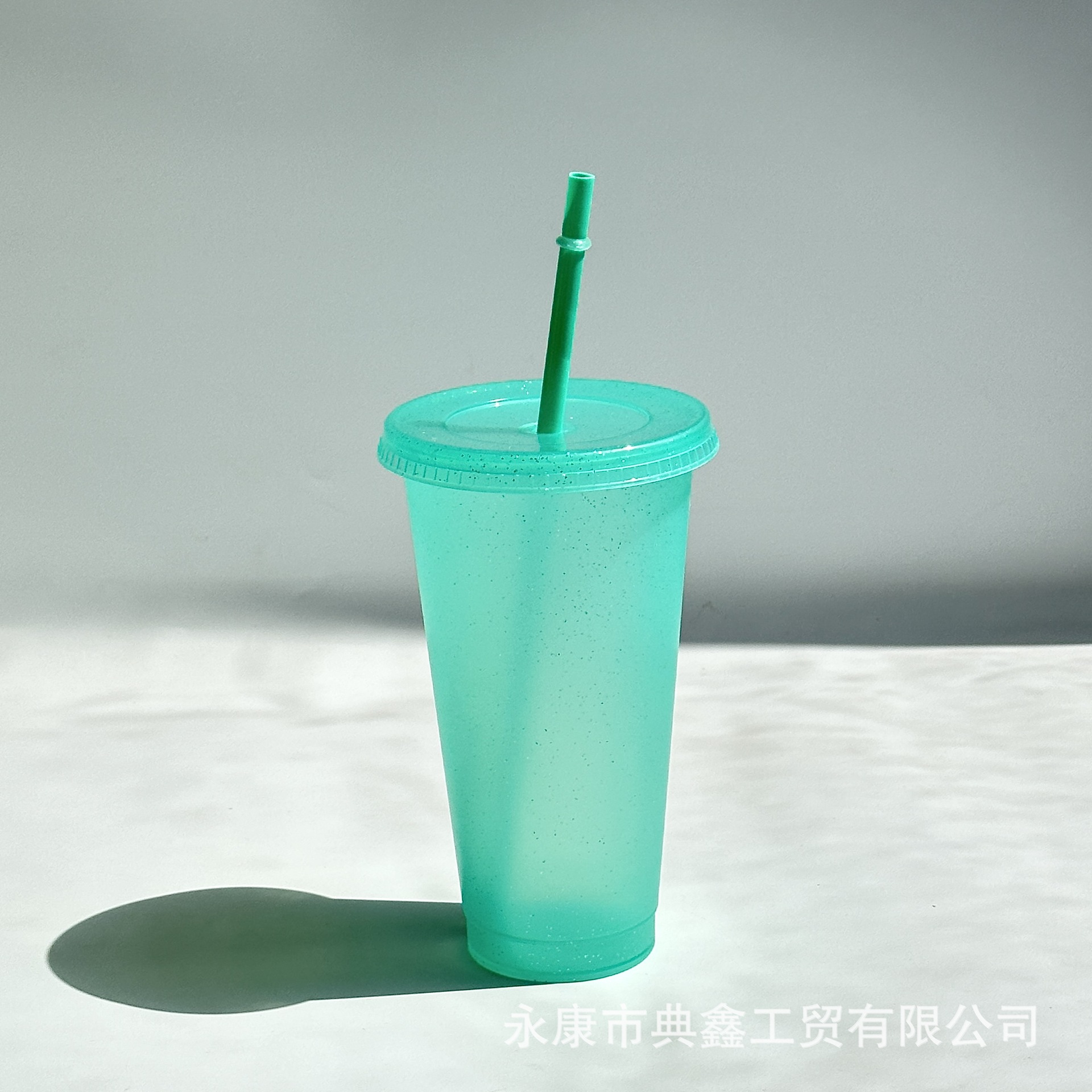 亚马逊爆款单层闪粉吸管杯710ml大容量PP塑料水杯24OZ可印刷logo