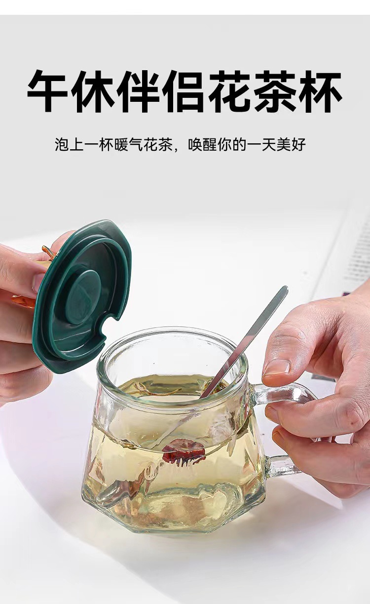高颜值早餐杯皇冠水杯把手玻璃水杯咖啡杯带勺女生办公室礼品杯子