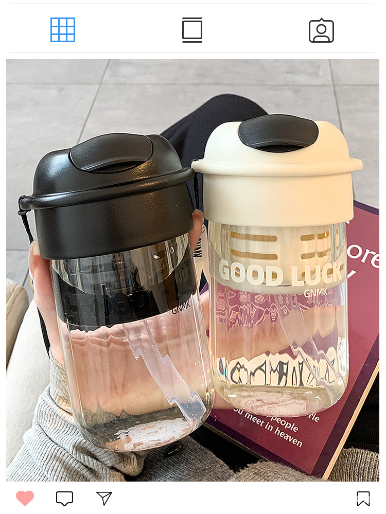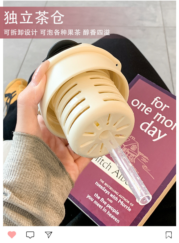 简约水杯女生吸管玻璃杯带茶仓学生便携耐高温泡茶杯子ins高颜值