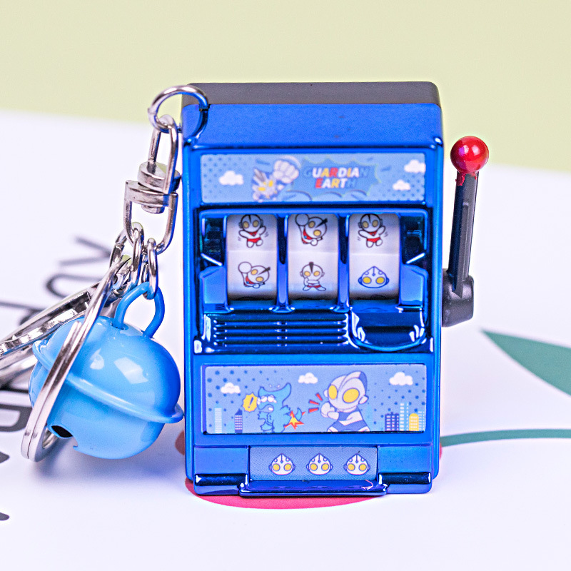 可爱创意迷你水果机卡通摇奖机太空人凹凸曼转转乐钥匙扣挂件饰品