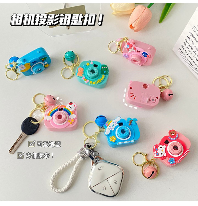 创意卡通可爱发光投影相机钥匙扣网红包包钥匙链挂件摆摊夜市玩具