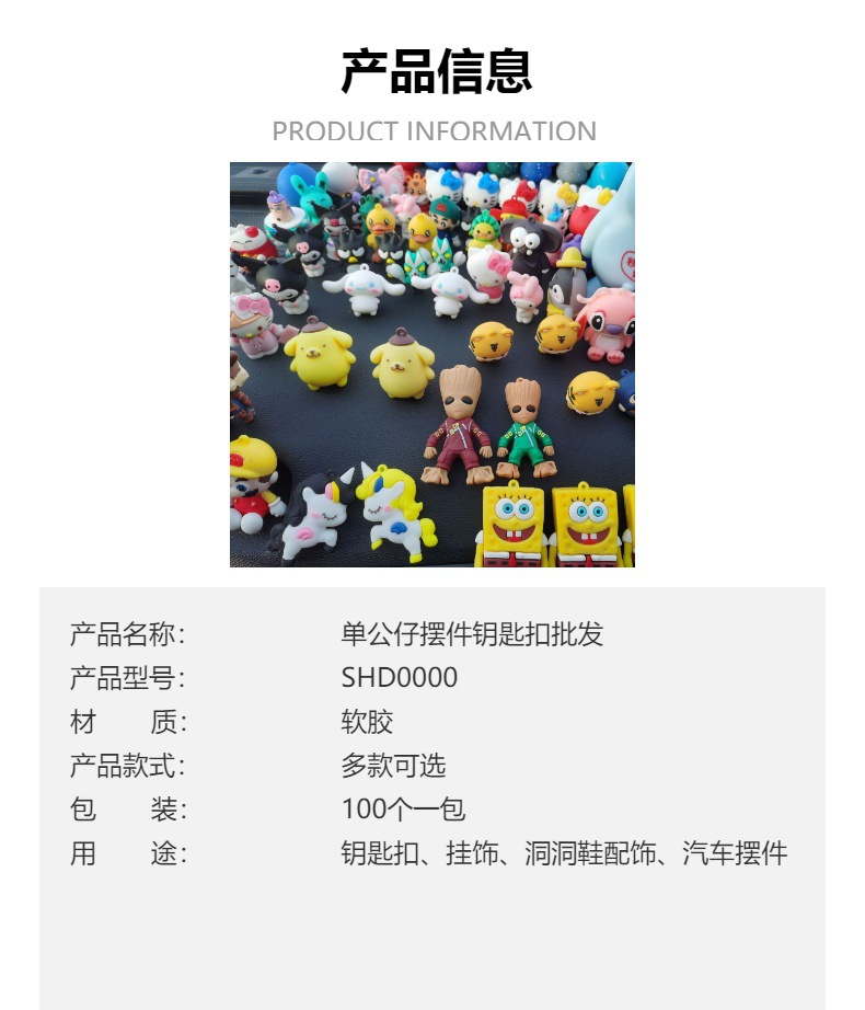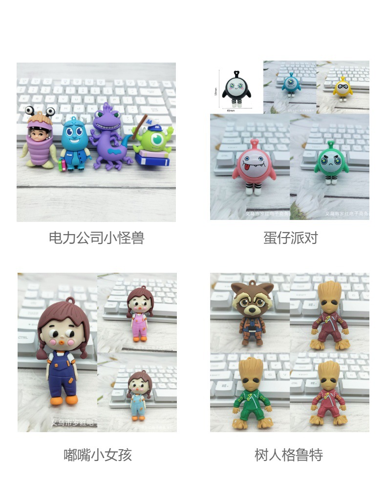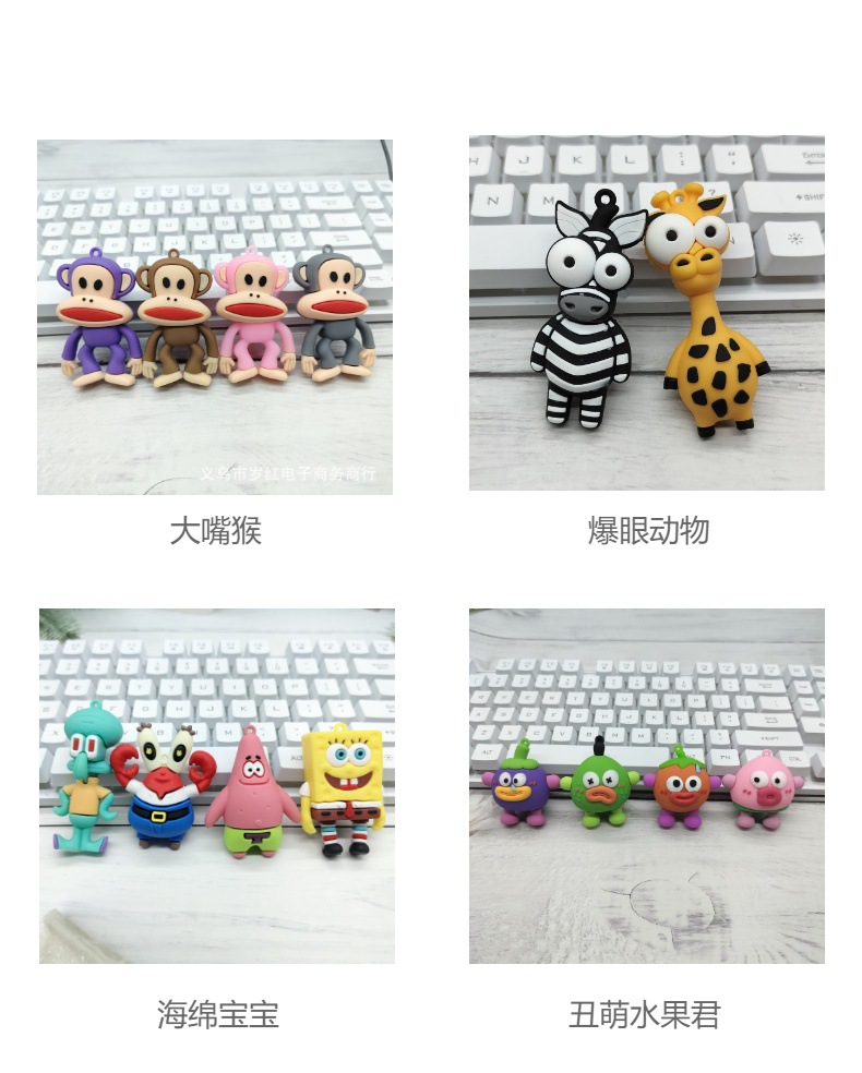 卡通爆眼动物钥匙扣挂件鞋扣diy配件斑马长颈鹿PVC软件单公仔批发