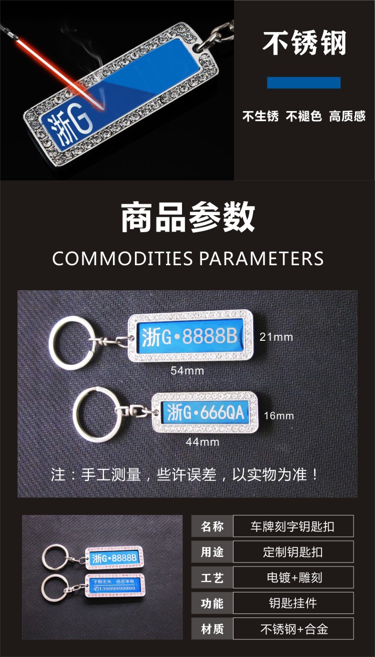 抖音快手不锈钢车牌刻字钥匙扣激光刻字汽车防丢号码牌金属钥匙扣