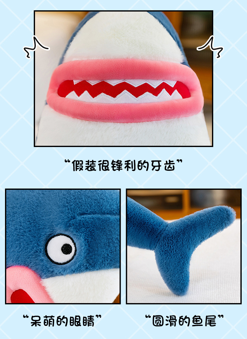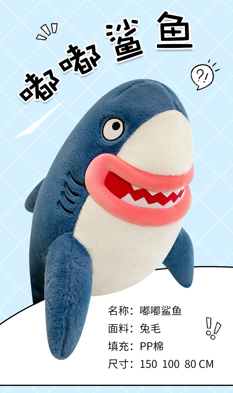嘟嘟搞怪鲨鱼抱枕红唇巨齿鲨整蛊玩具毛绒公仔玩偶长条抱枕礼物批