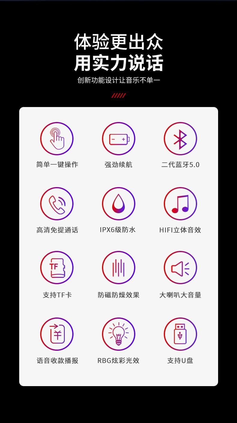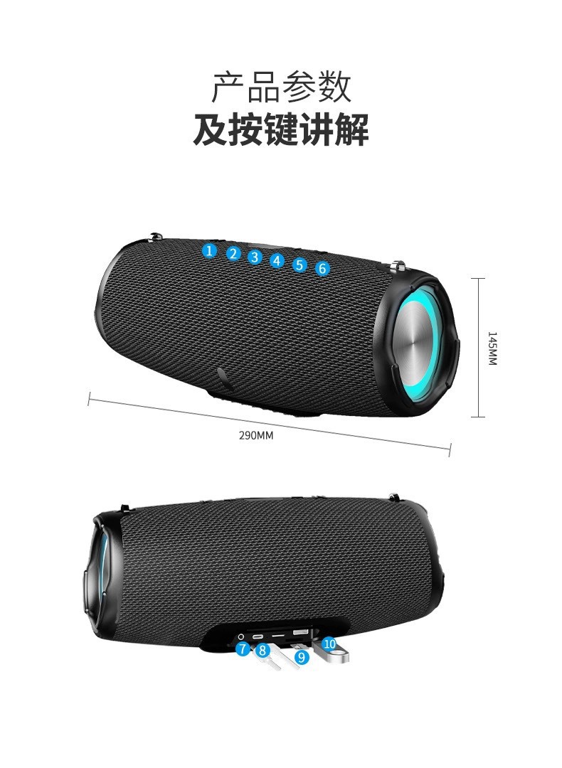 A6跨境AI智能音箱蓝牙RGB炫彩灯便携大音量无线小音响IPX6级防水