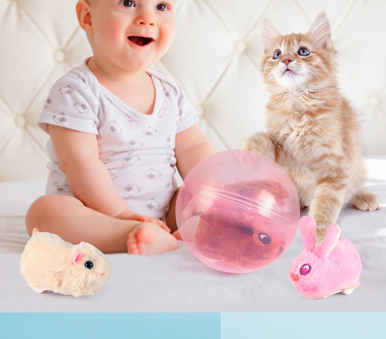 抖音同款电动仓鼠滚球粉色小兔子跑球儿童毛绒宝宝学爬逗猫狗玩具