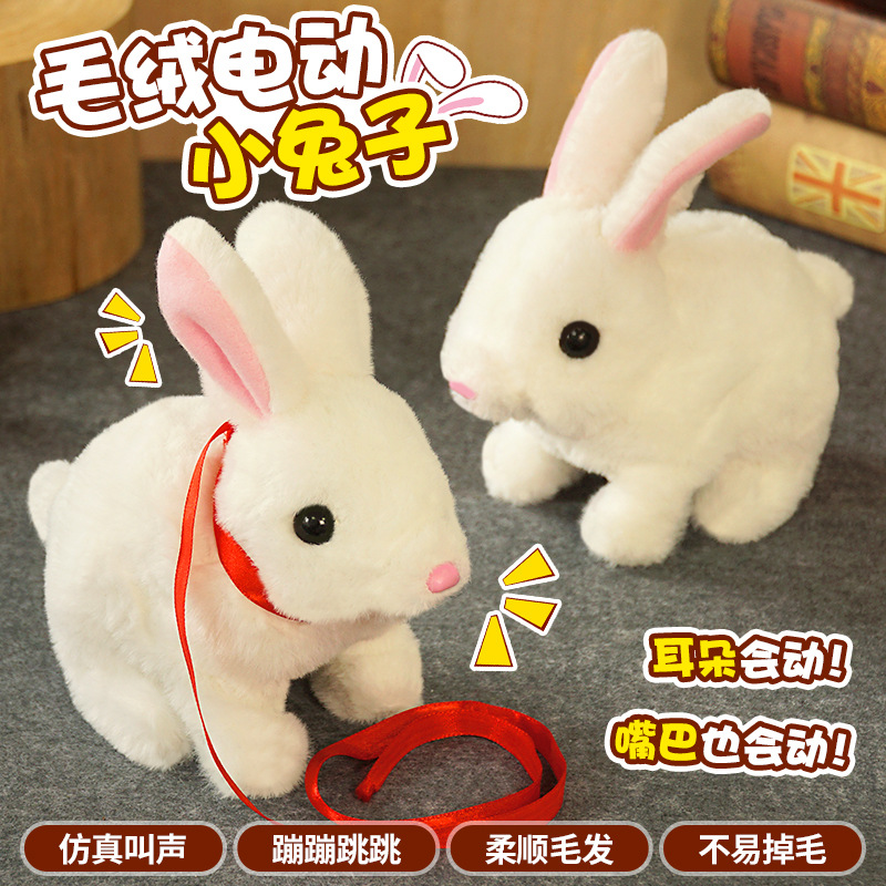 电动兔长毛绒彩色小白兔子仿真宠物会走会叫会动嘴摇耳朵宠物玩具