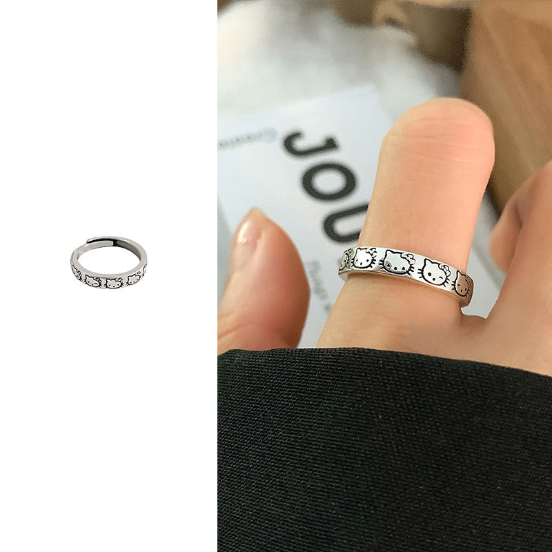 网红爆款戒指女甜美可爱学生情侣指环爱心凯蒂猫开口可调节食指戒