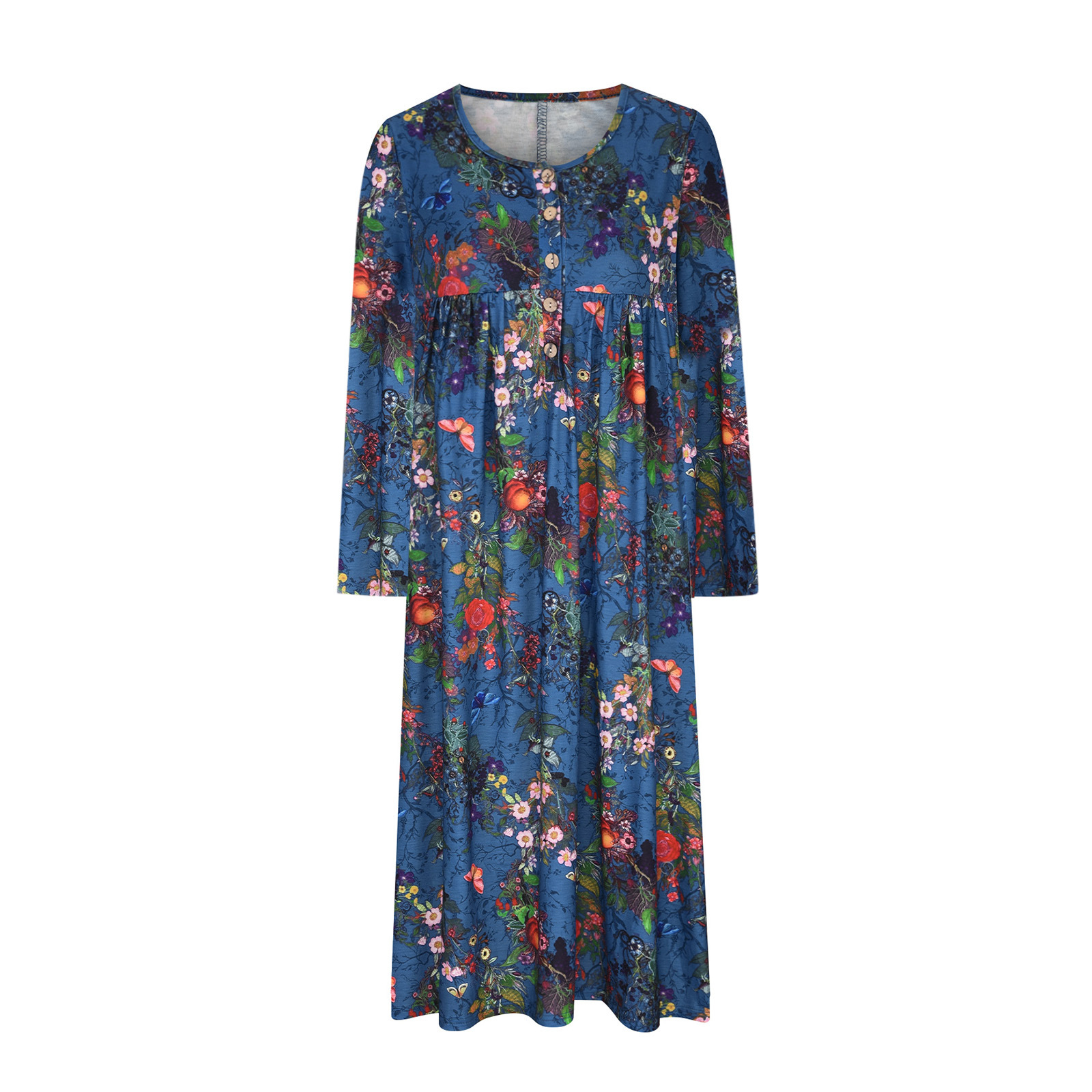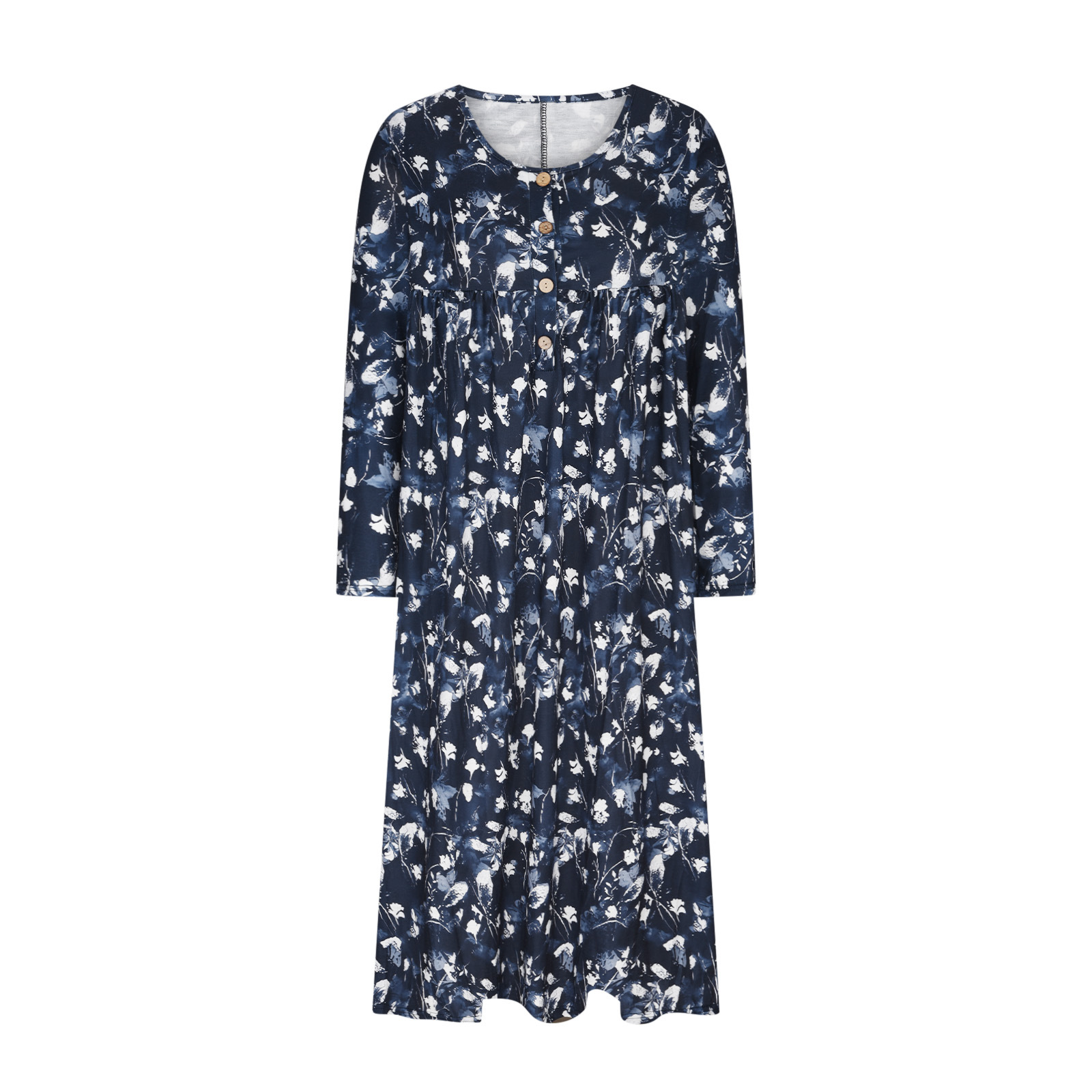 2023wish欧美大码新款女装 亚马逊印花口袋钉扣连衣长裙 大量现货