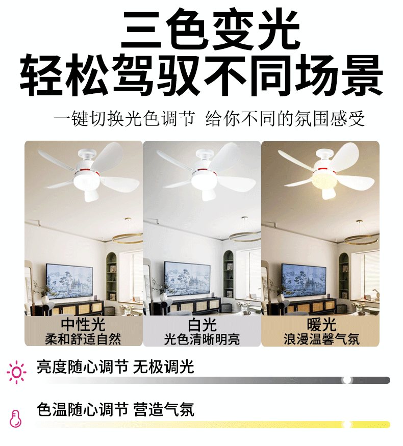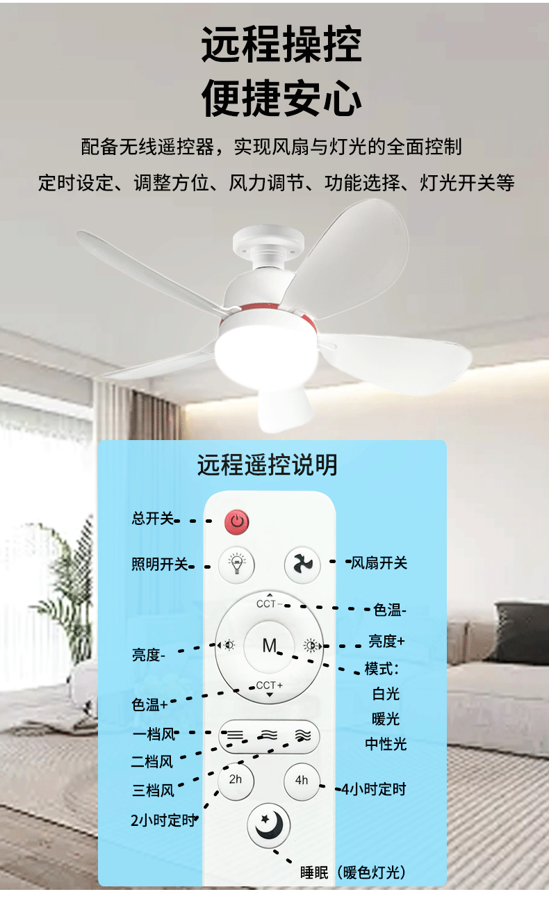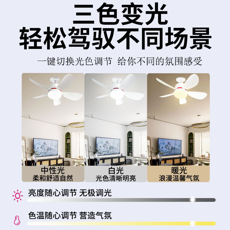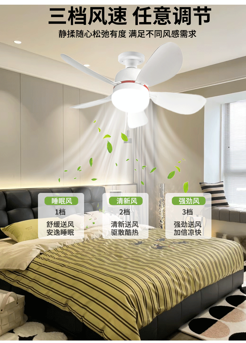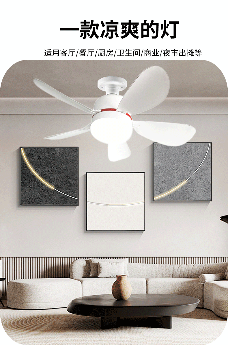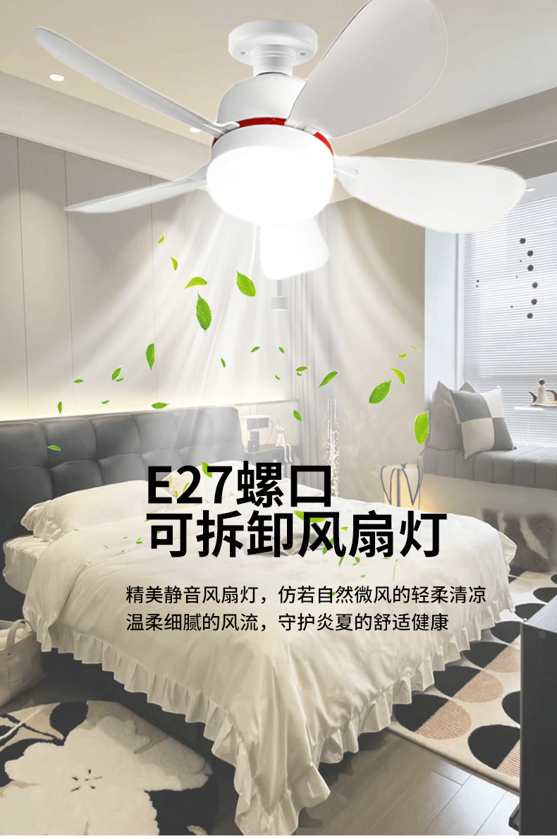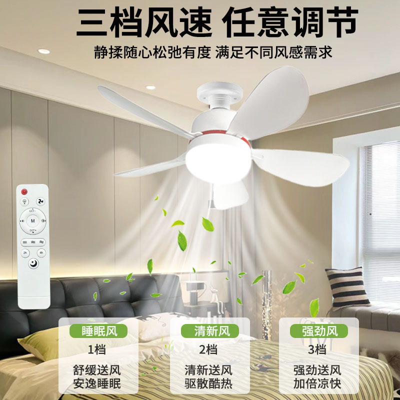 2024跨境新款夏日螺口风扇灯超大风力节能LED照明卧室客厅吊扇灯