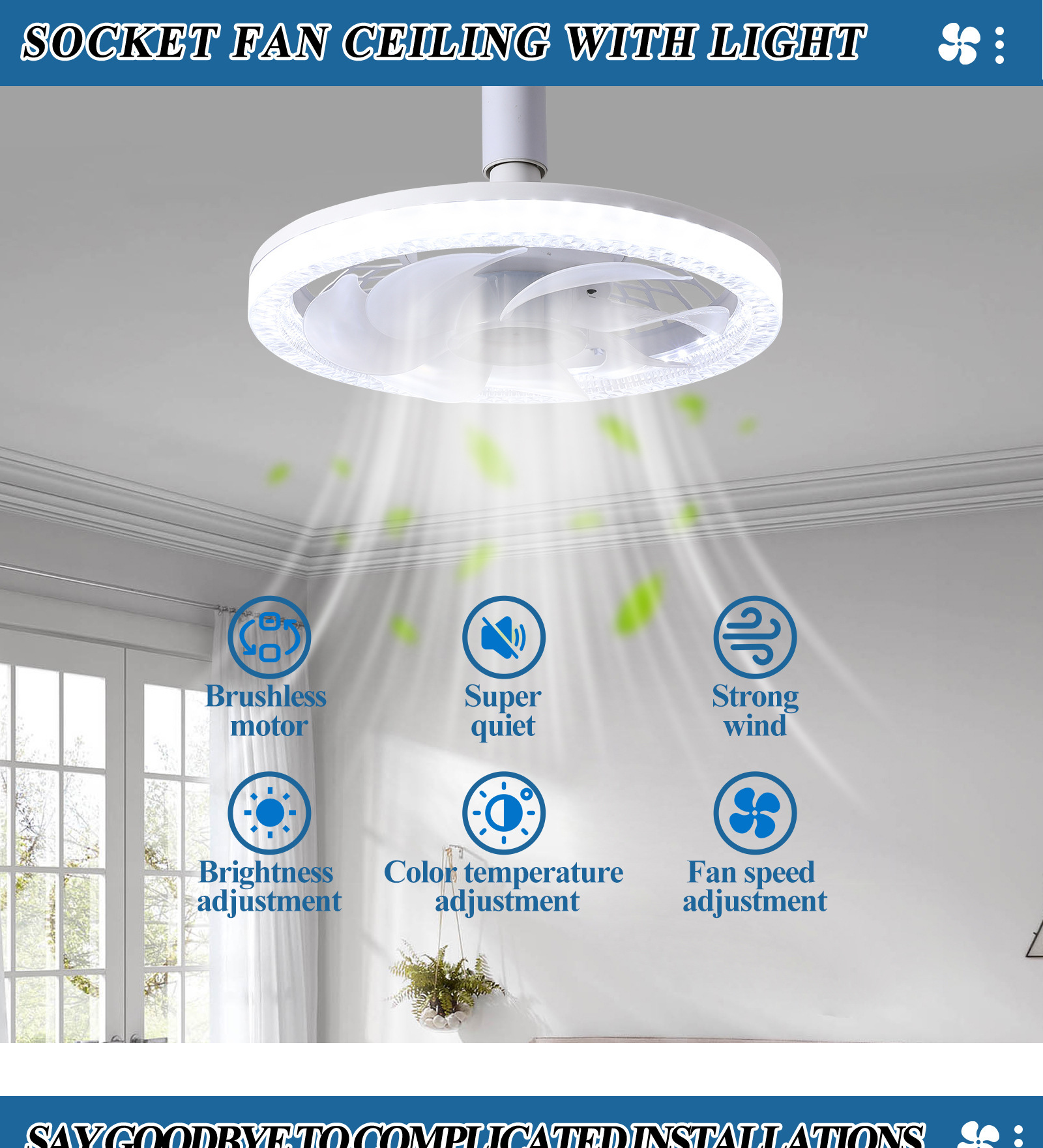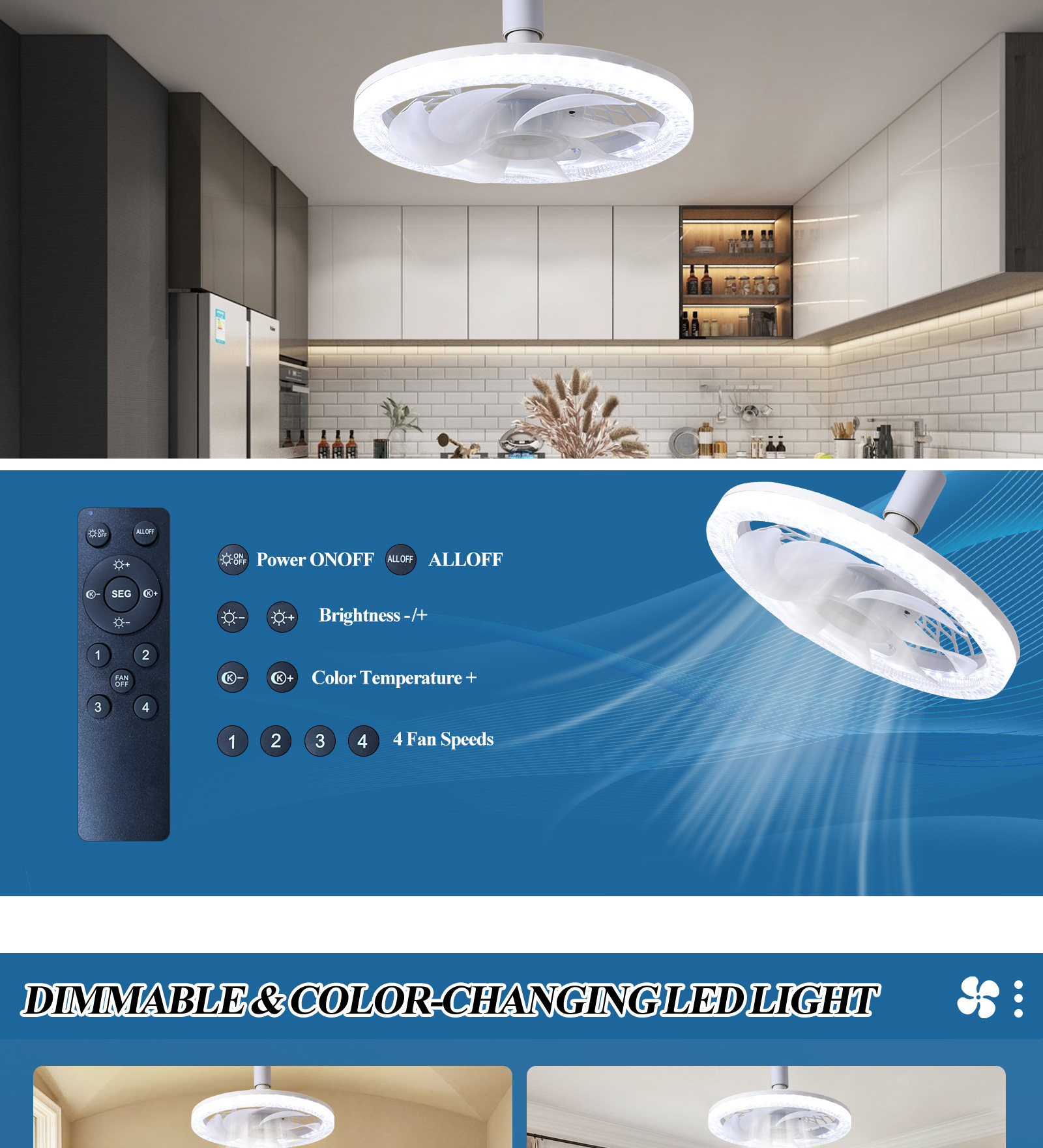 跨境新款led风扇灯现代简约风扇照明两用一体E27螺口风扇灯