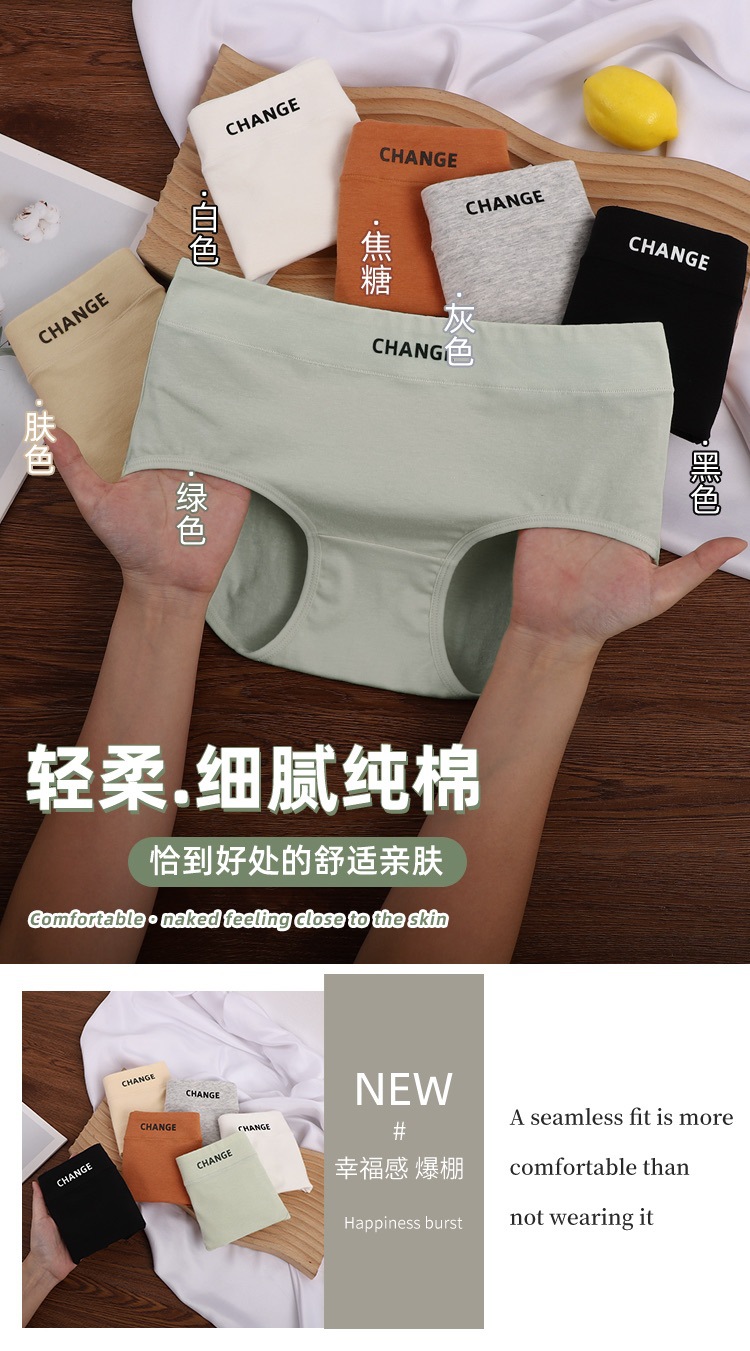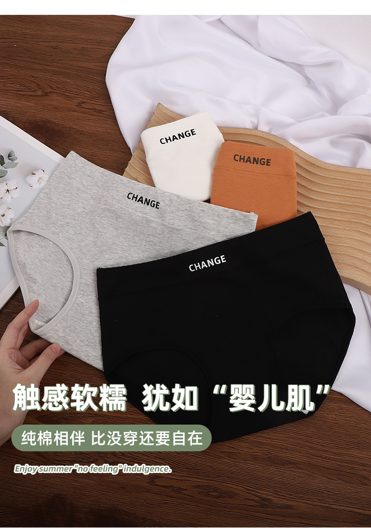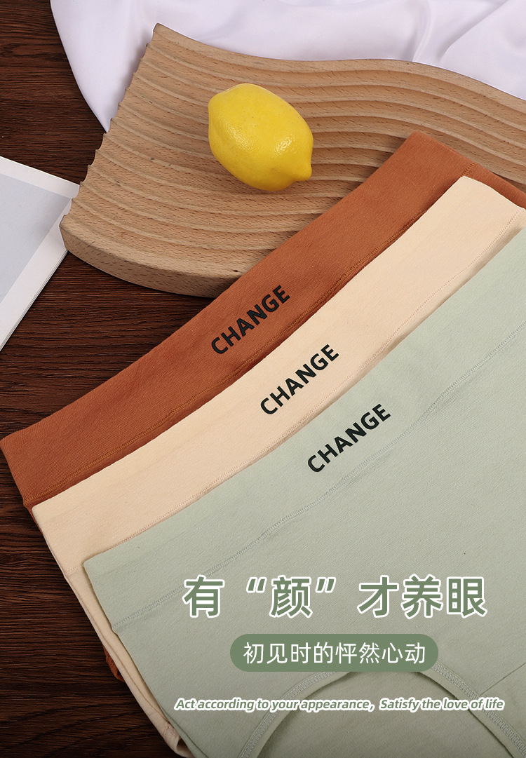 女士纯棉少女内裤字母印花腰带可爱色系纯棉裆部提臀中腰三角内裤
