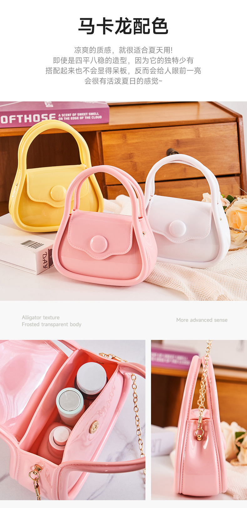 博昊 PVC果冻包2023新款单肩斜挎包女清新百搭迷你链条手提单肩包